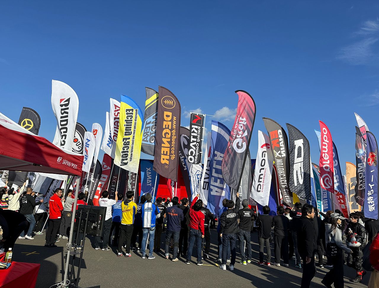 で、集合写真撮るから出展企業は旗持って集まれよアナウンスあり行ったこれ。
