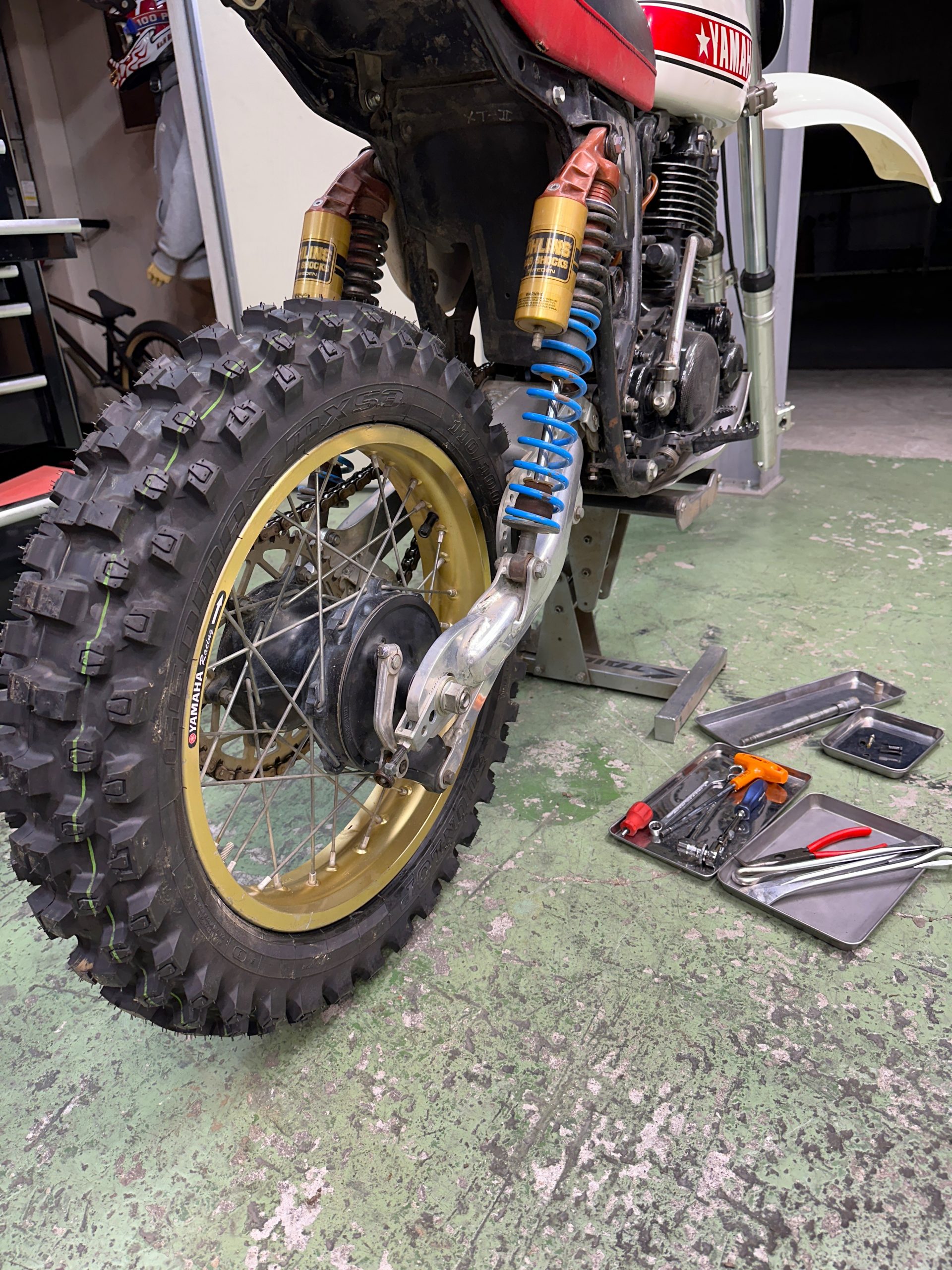 そんな中、日曜日のチキチキVMX(ビンテージモトクロス)に向け毎夜一人でXT500の準備もしているという…。