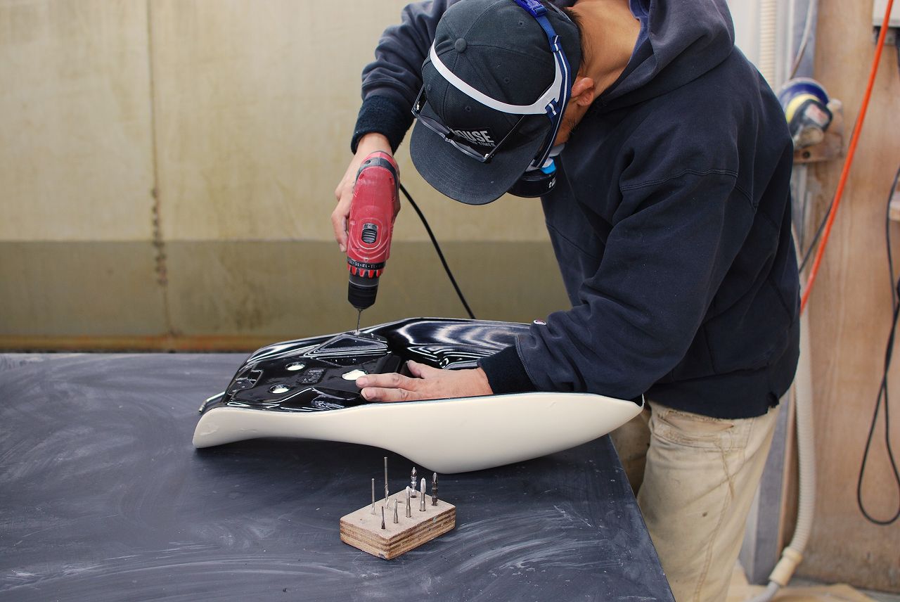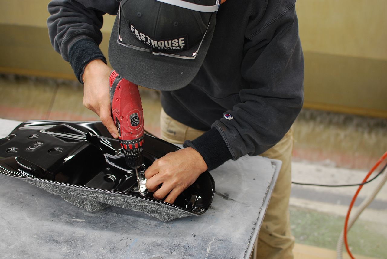 前後取り付けステーは何度も確認しながら慎重に合わせて穴を開ける。