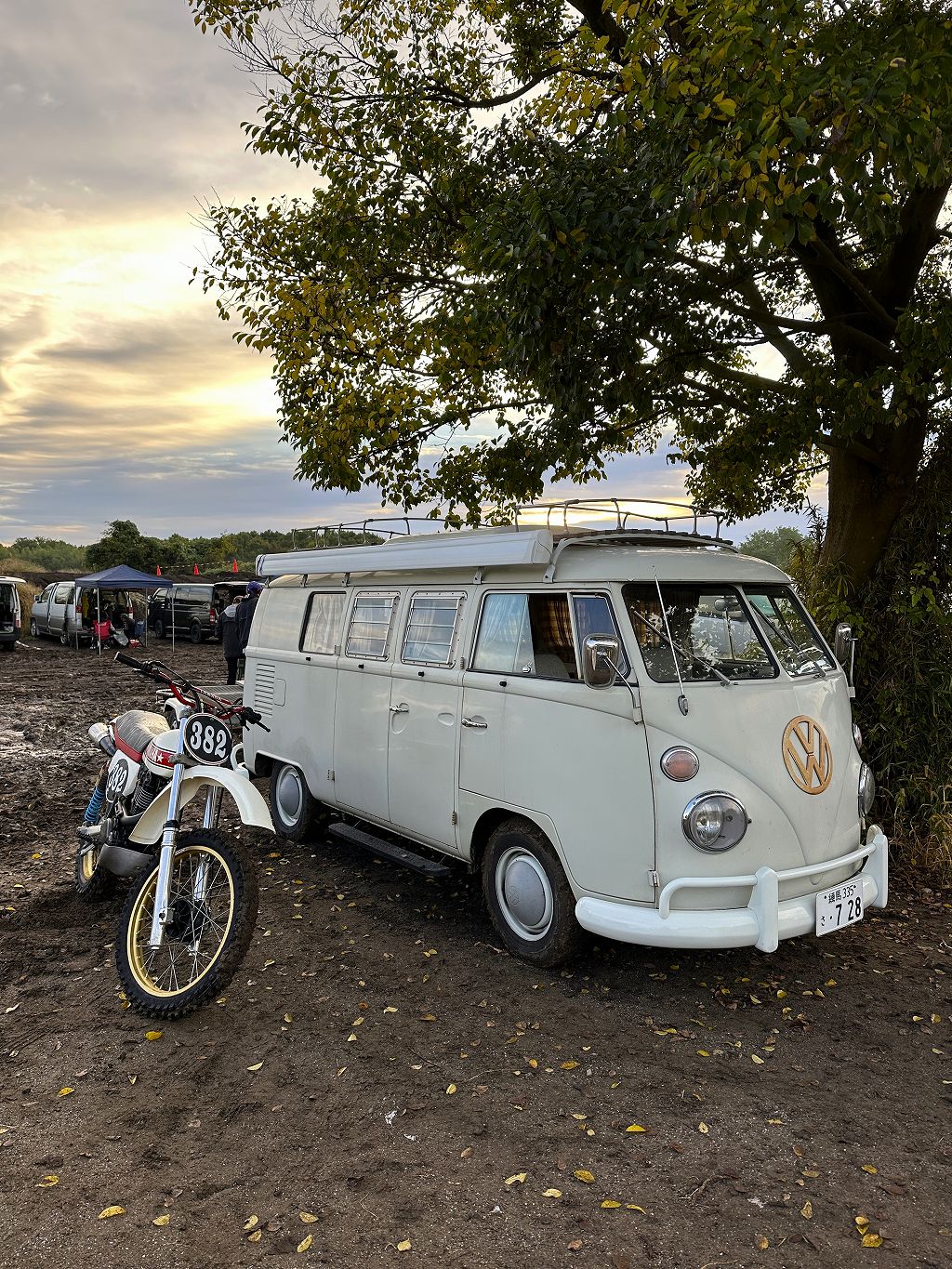 チェッカー後、一周回って戻るか迷ったが『あ、これは無理だ…ヤバイ』ショートカットしてコース外出てもう乗っていられないと動線から外れて誰かのトランポの前で降りる。