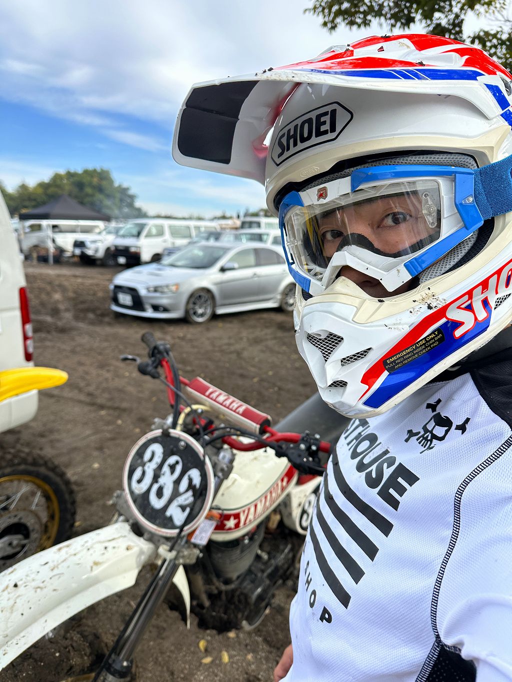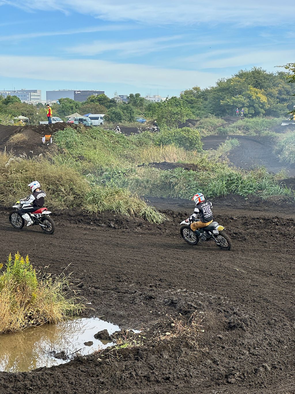 スタート失敗だったが 1コーナー2番手から途中で抜いてトップ走って奥のぬかるんだウッドチップでクラッチ切ったらエンスト…。