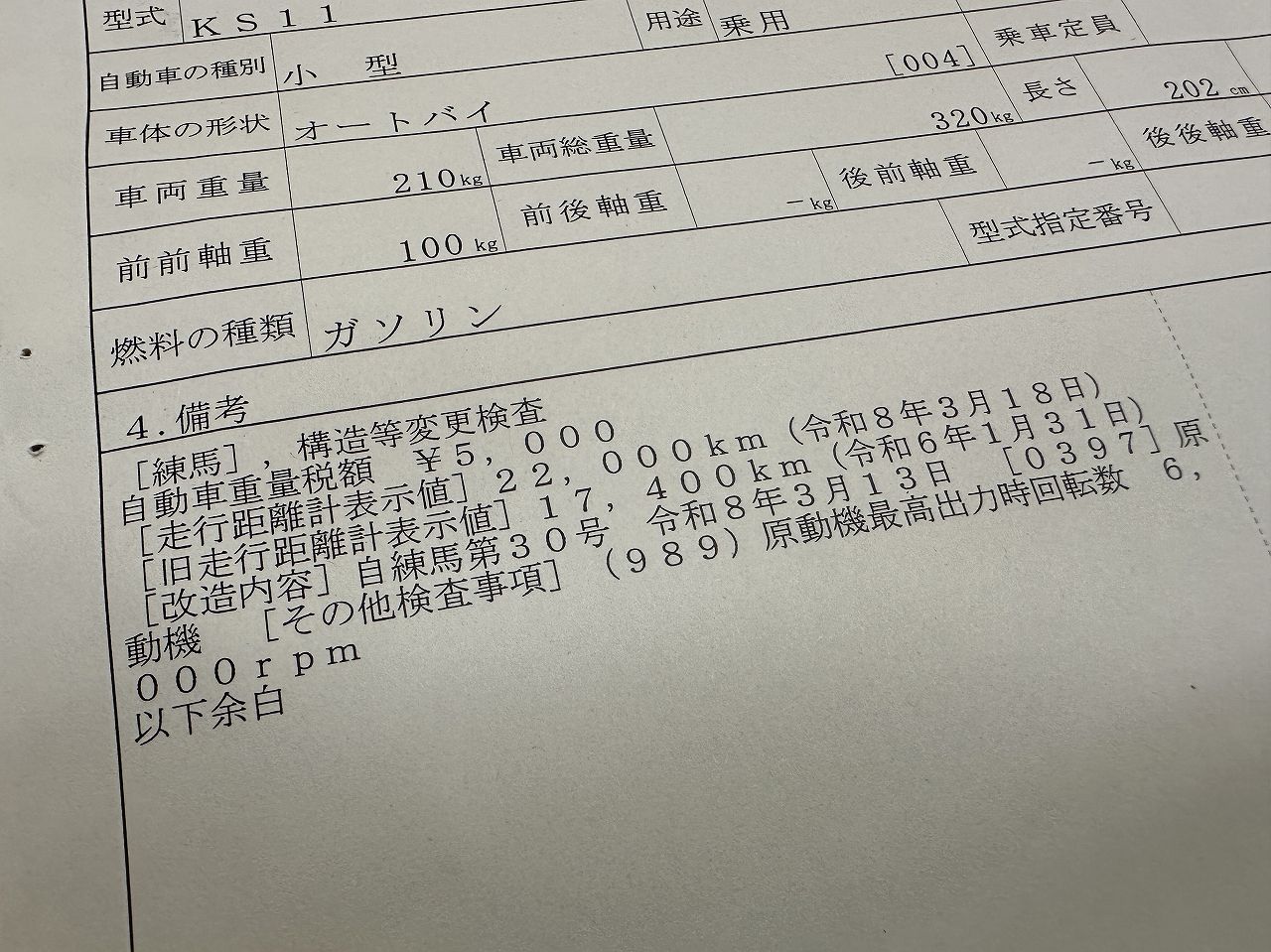車検証も出た。