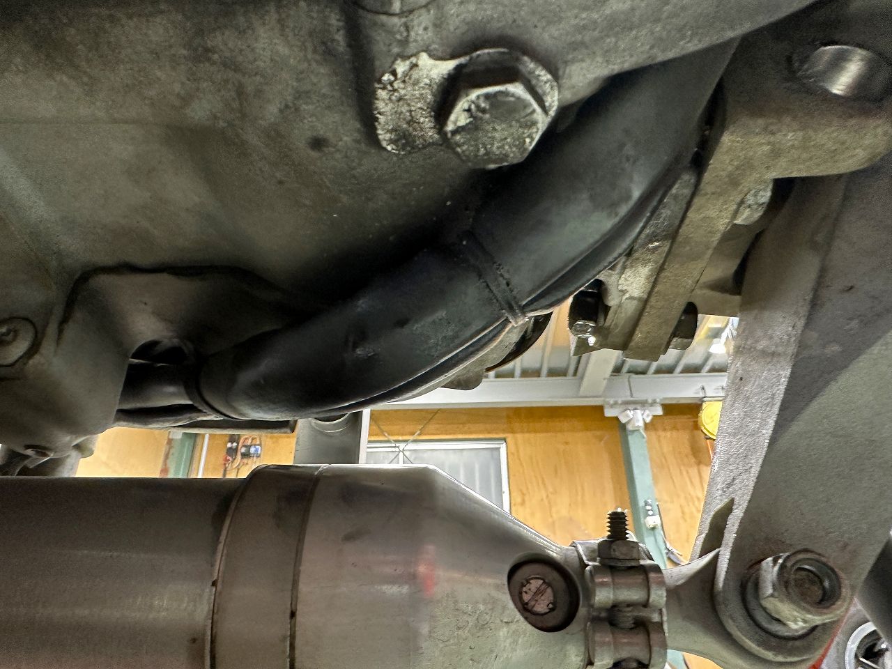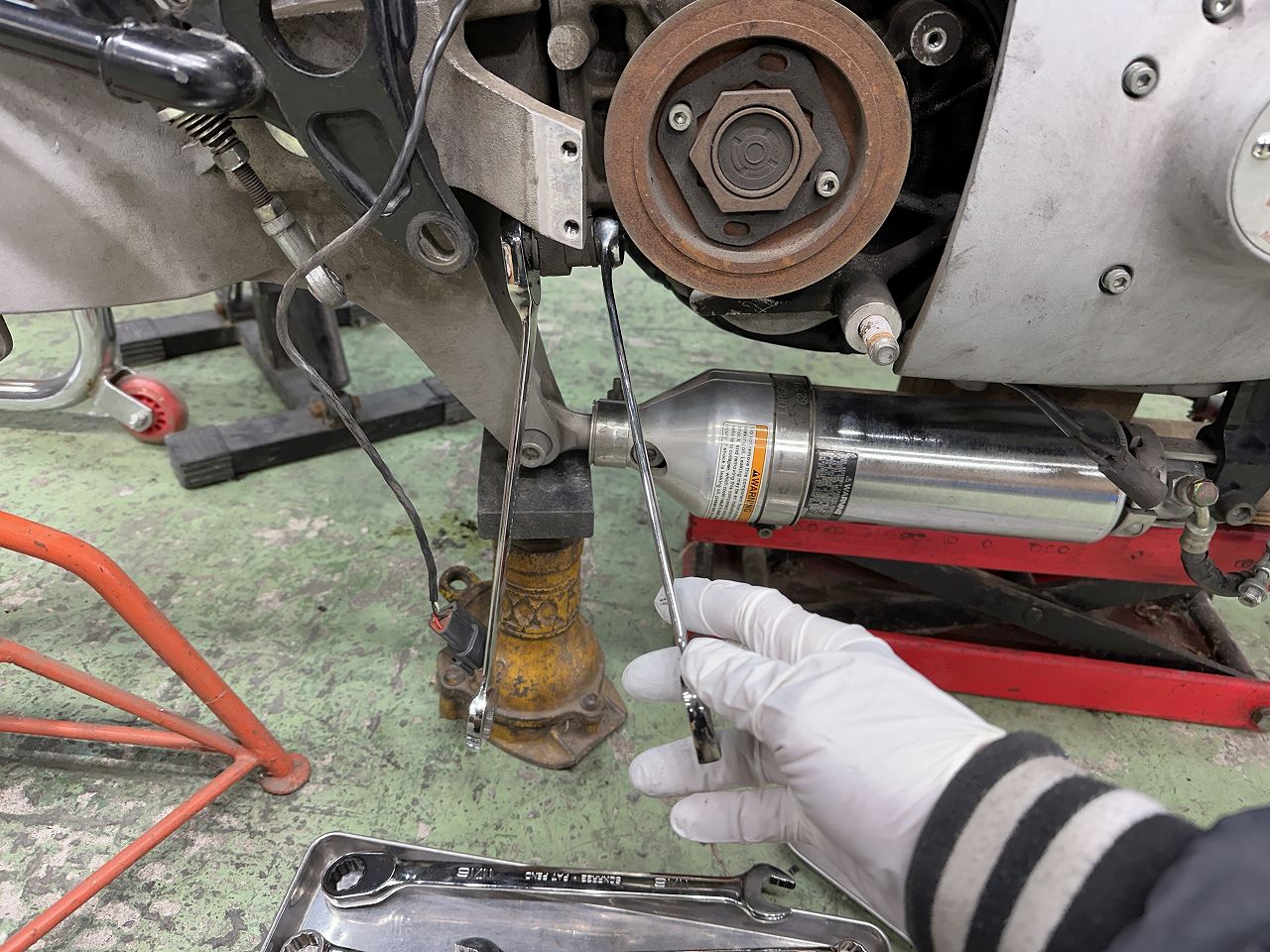 スイングアームピボットに挟まっているアイソレーター(ゴム)を固定してるボルトが緩むのかだけ確認。