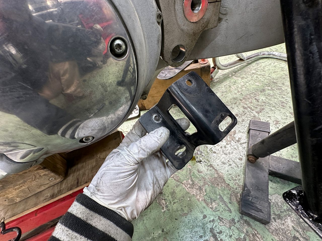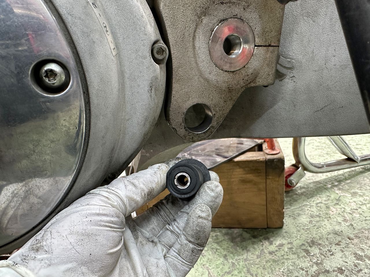 本来というか、スポーツスターならこのクランクカースの4点でフレームにリジッドマウントされている。