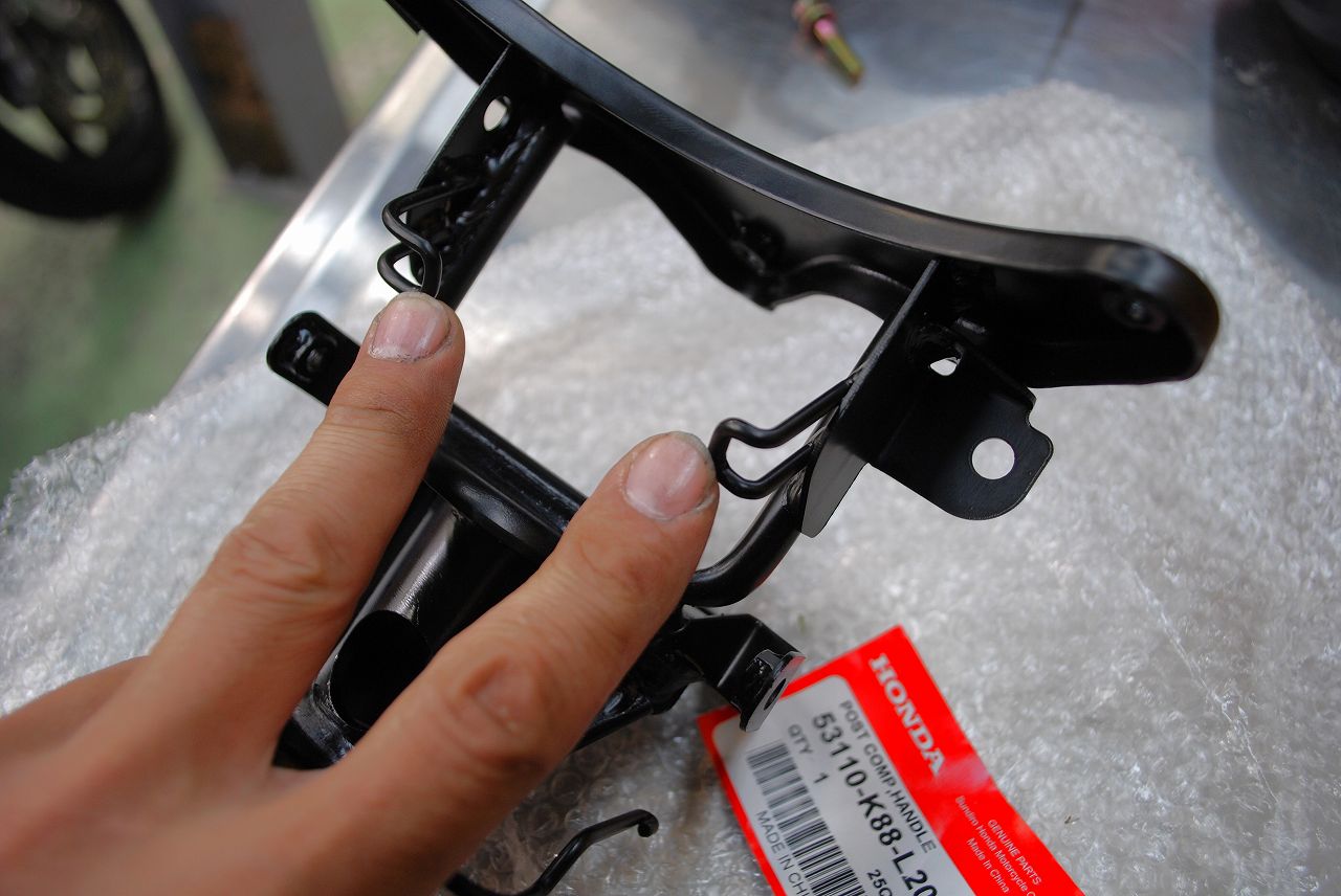 あと、メーターステーで嵩が増した分、首下28 ⇒ 32mmにした純正座金付きボルト。