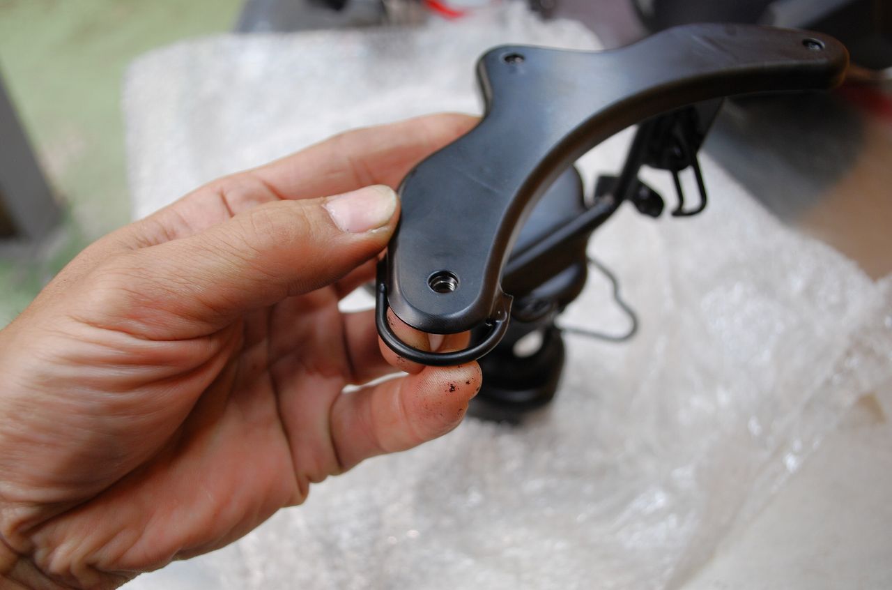 ハーネスとディスクブレーキ(油圧)ホースのホルダー。