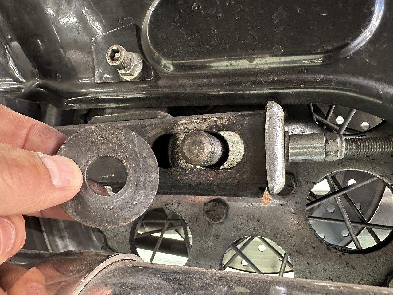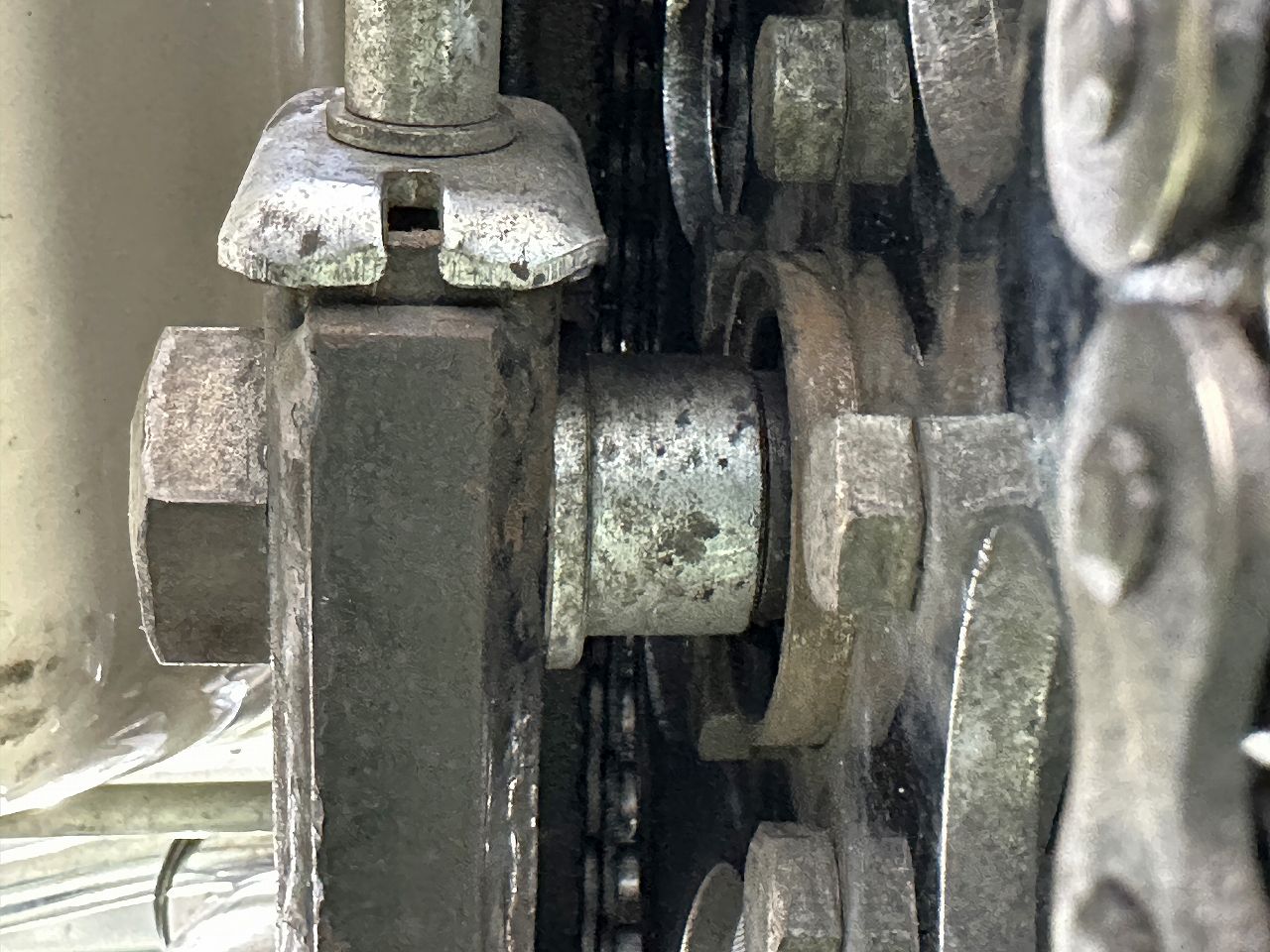 なので、DS製のアクスルブロック(中子というかチェーン引き)と、適当なデカくて厚いクロモリワッシャーを使っている。