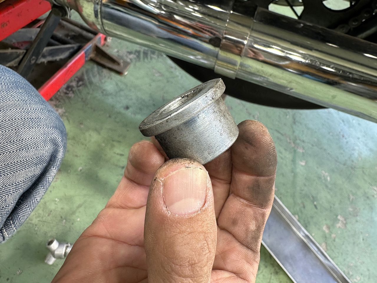 純正デフォルトはサスのエンドアイみたいな形状で、当り面小さいから漏れなくどんどんパイプが潰れていく(内径小さくなる)。