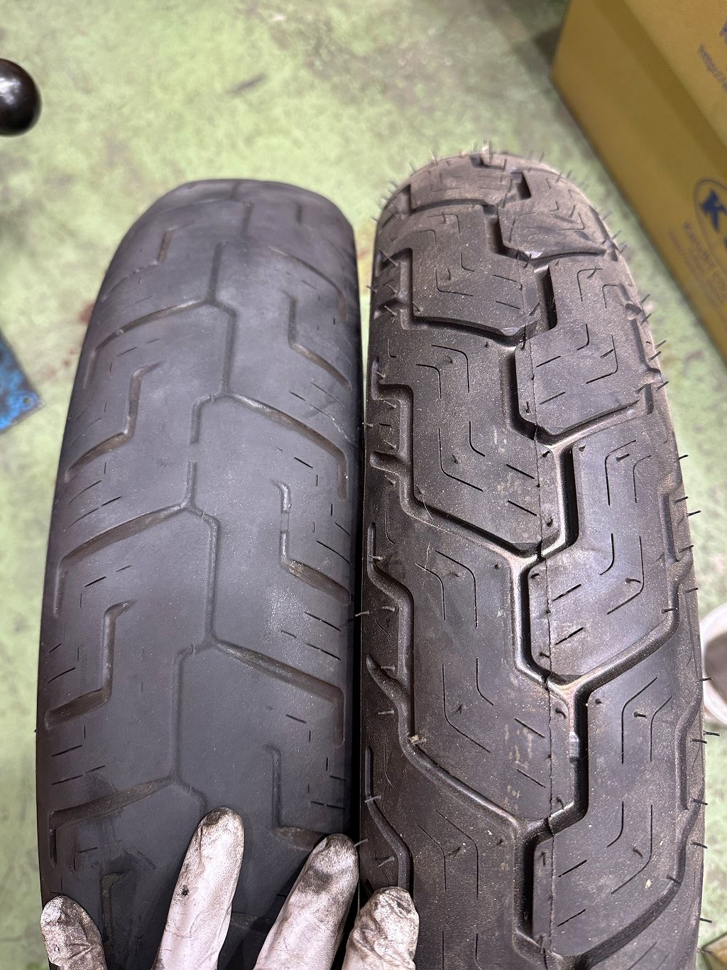 夏は乗らないし秋になったらと思っていたがやる時間も無く、ちびったタイヤで走っていたがもう我慢の限界。