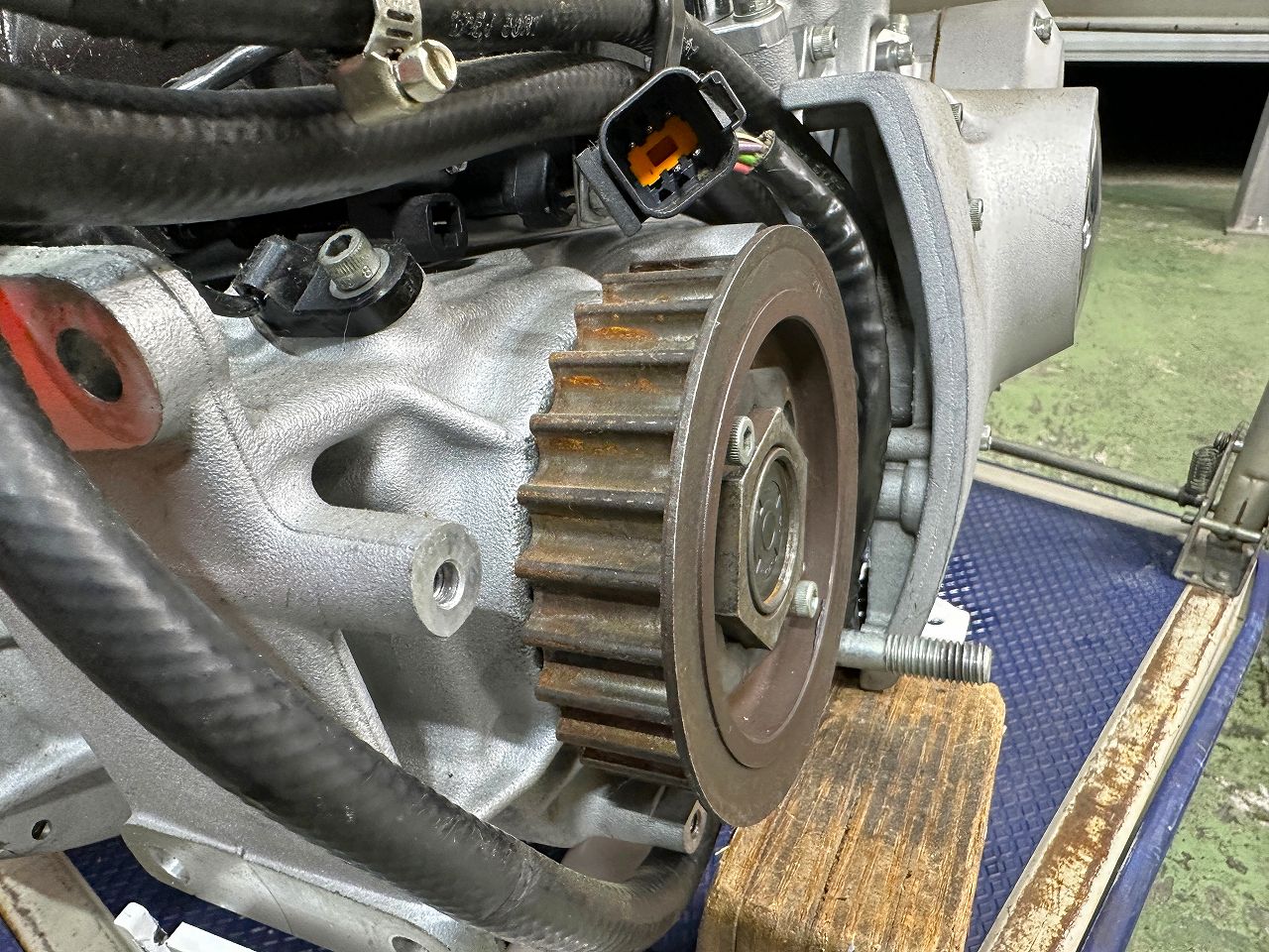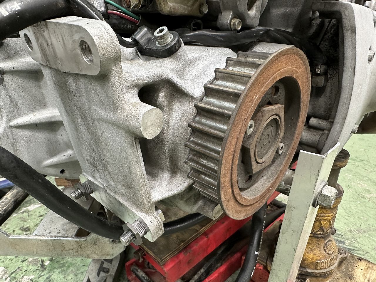 張り足らない(緩い)ことあったのか、スイングアームブロックにベルト擦った跡あった。