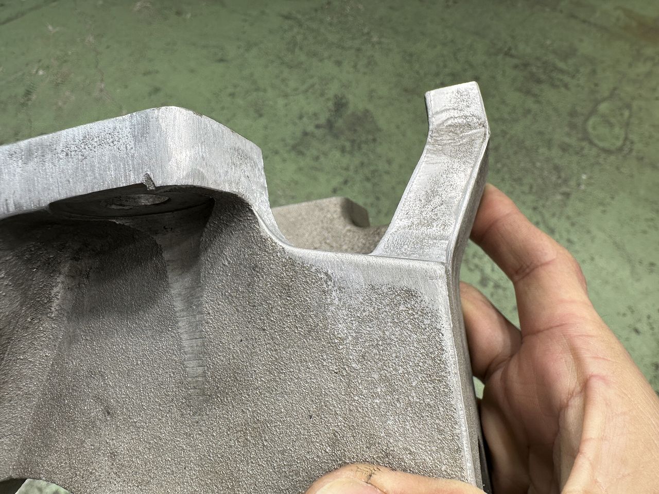 逆回転側で引っ掛かったら即切れそうだから角アール取って当たり面の鋳型跡も均しておく。