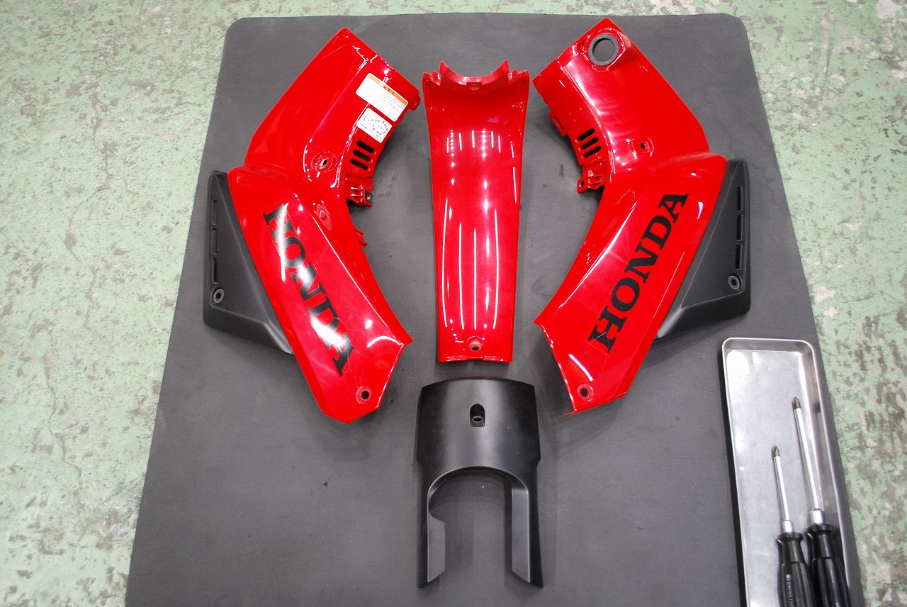 左右カバー、センタカバー、フロントカバーを取り外します。