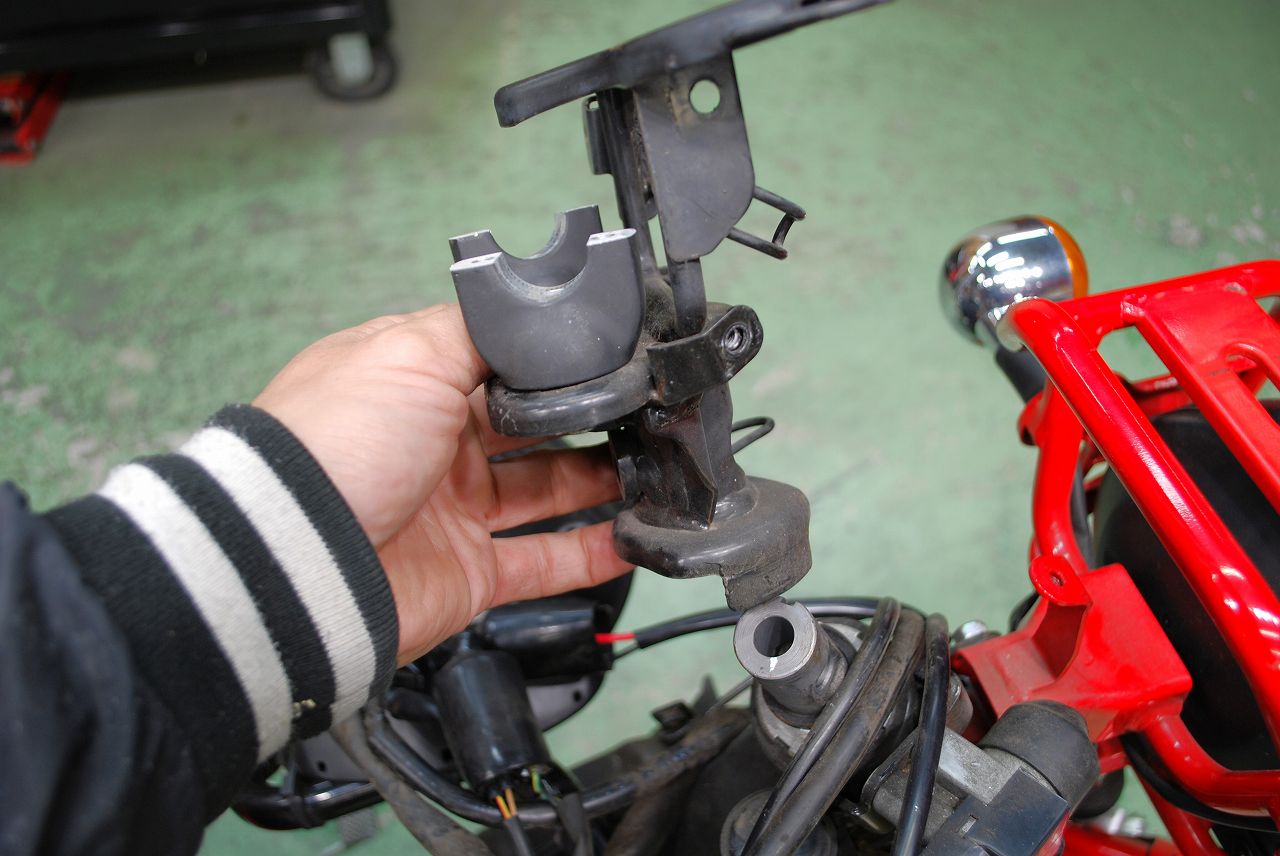 ハンドルポスト裏側にあるハンドルホルダーロアーの固定ナット2個を緩めます。