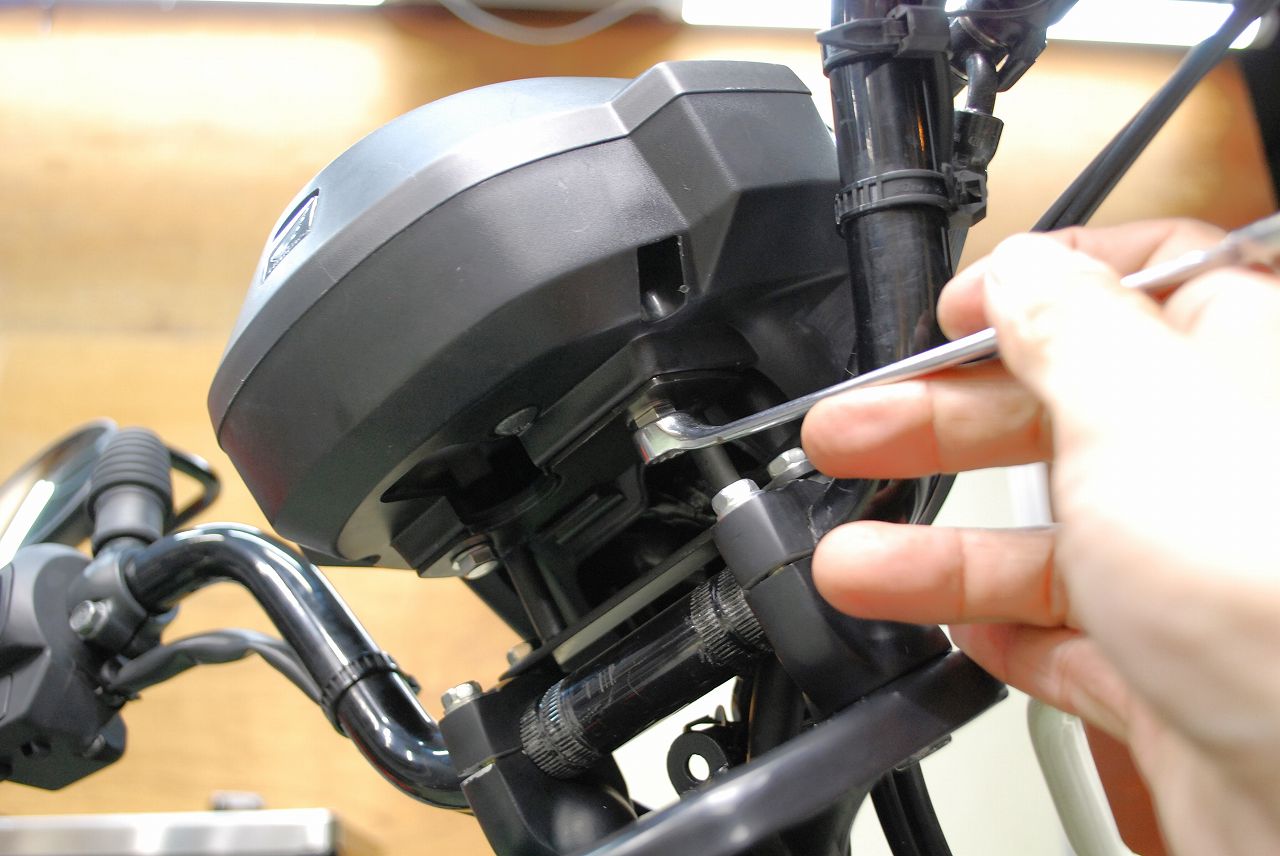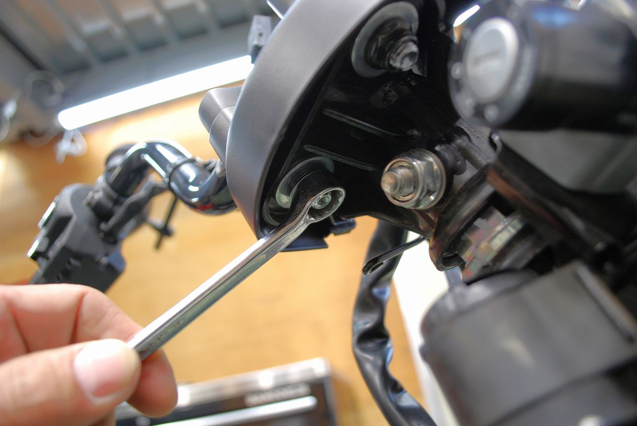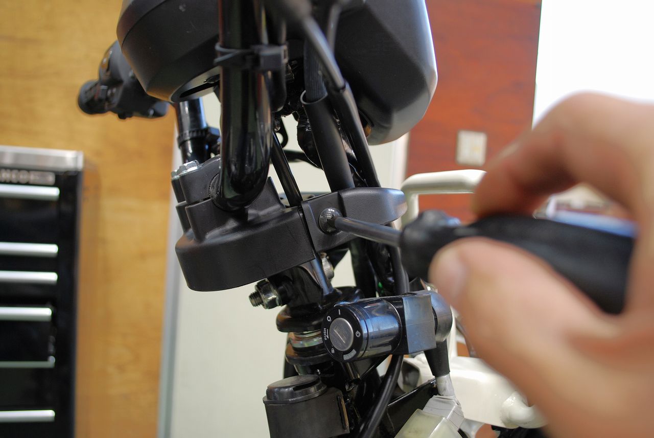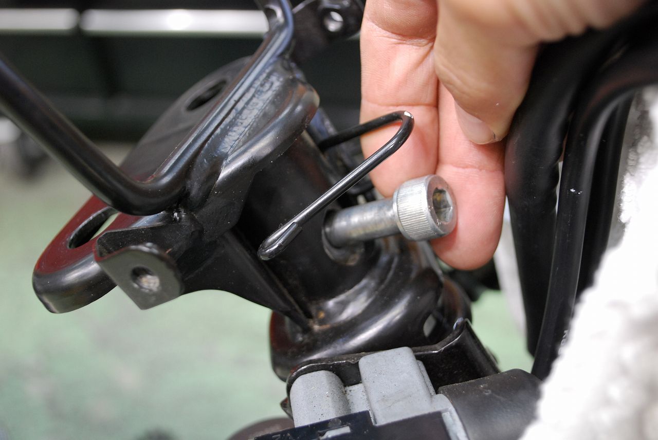 (*ハンドルを移動した際は、ブレーキフルードにエアーを噛み込むおそれがありますので、フロントブレーキレバーを握らないでください。)