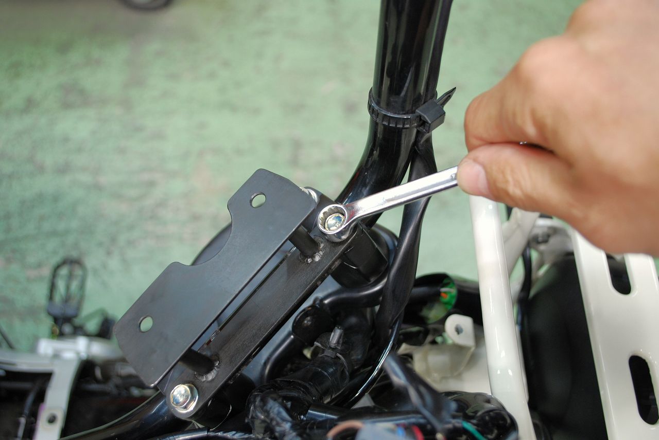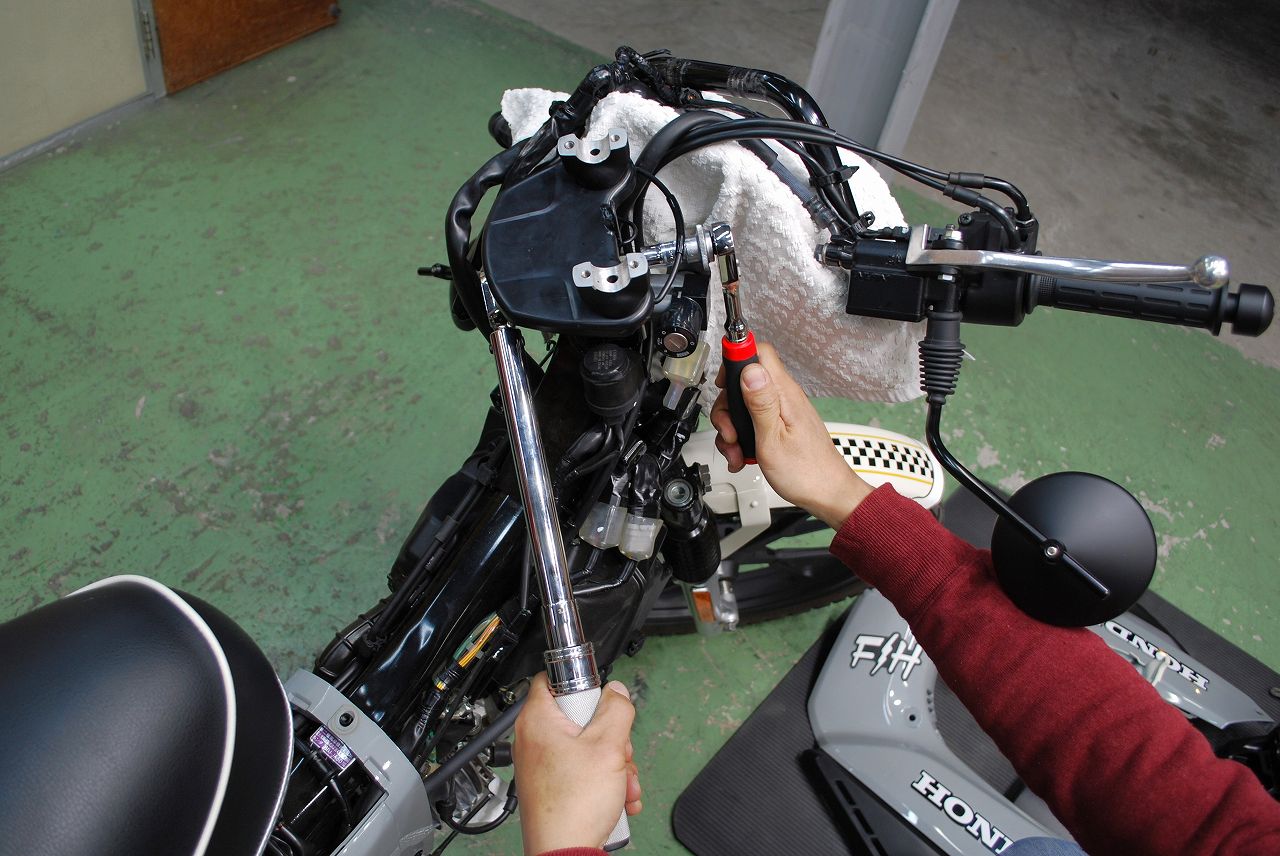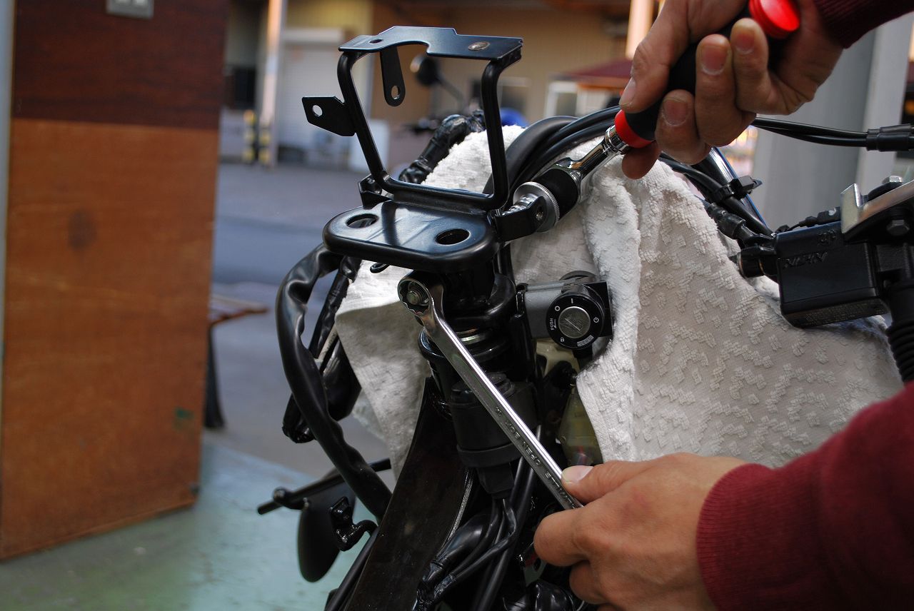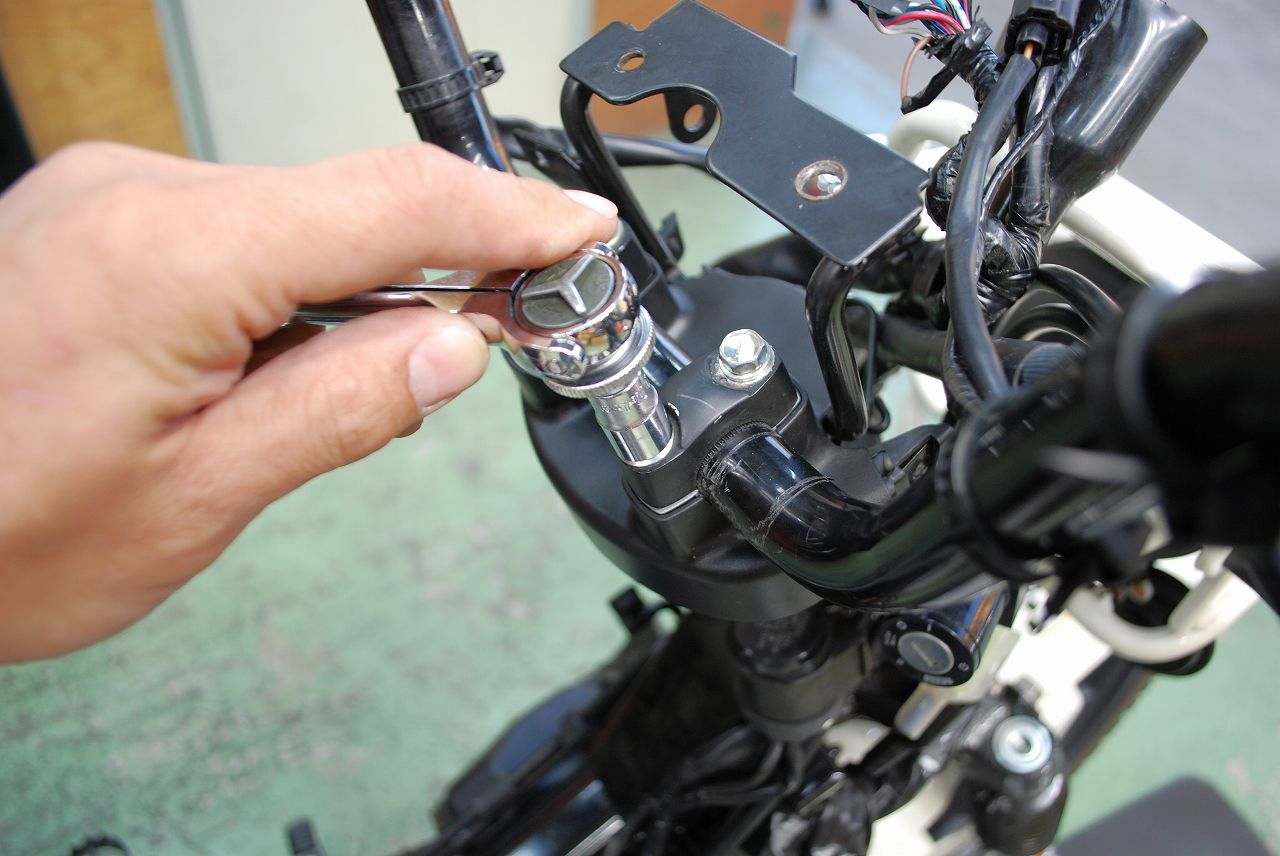 (*ハンドルを移動した際は、ブレーキフルードにエアーを噛み込むおそれがありますので、フロントブレーキレバーを握らないでください。)