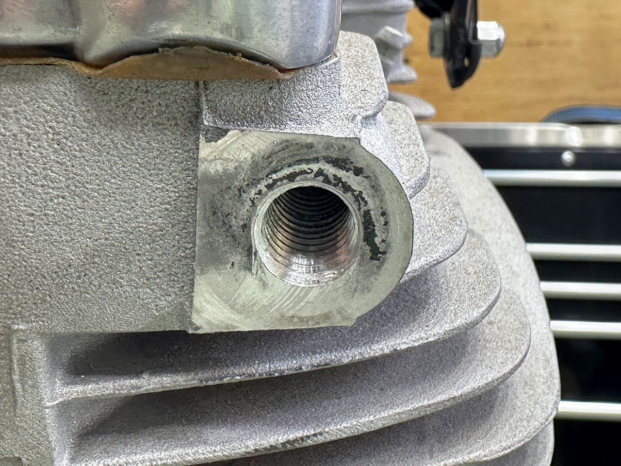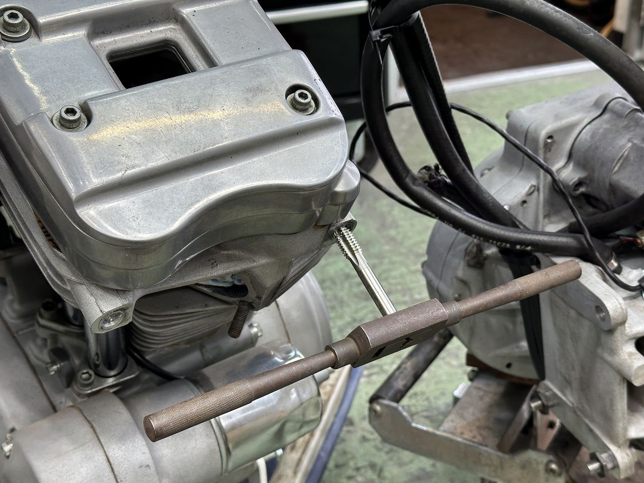 ビューエルM2を883化? その3 フロントアイソレーターボルトのネジ穴を。