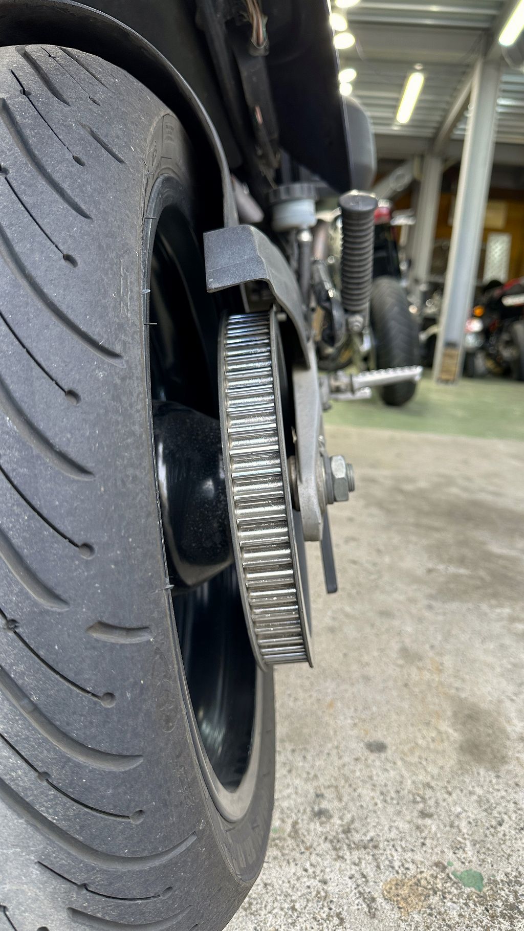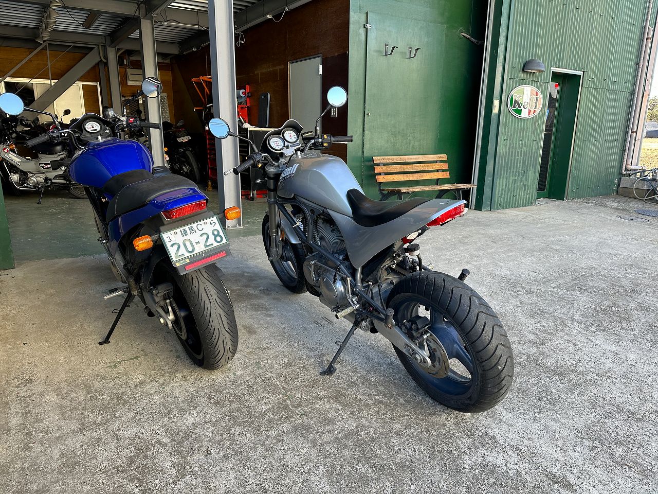 お客さんの目印になるからといつもそこにバイクを置いとくのだけど、今日はM2だなとバックしてギア入れて停車しようとしたら止まらない。