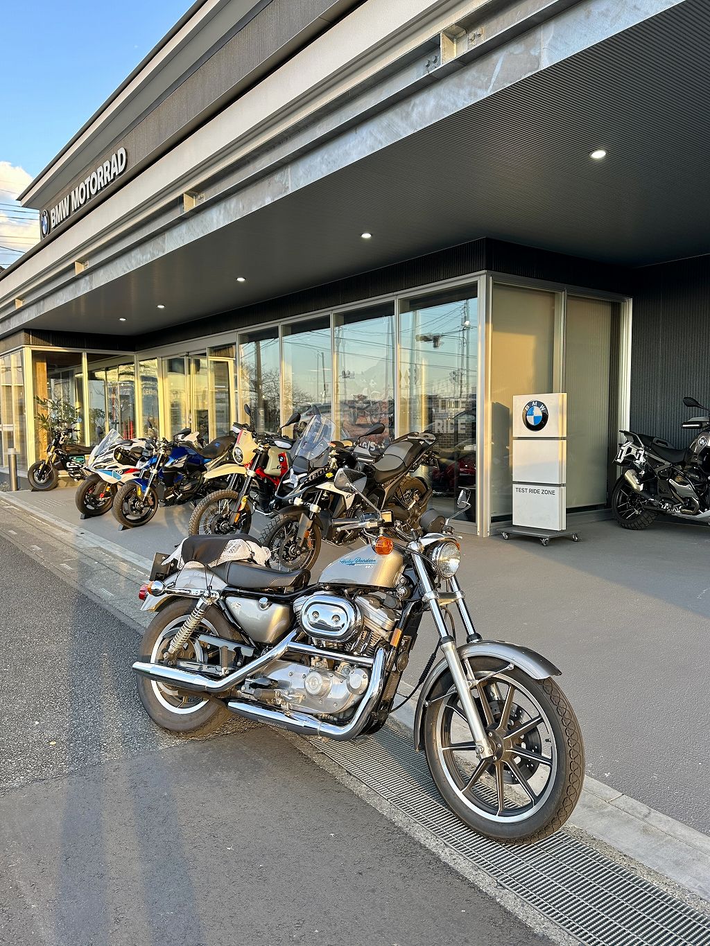BMWモトトラッド ディーラーへ旧型スポーツスター(HD)で乗り付けるなど。