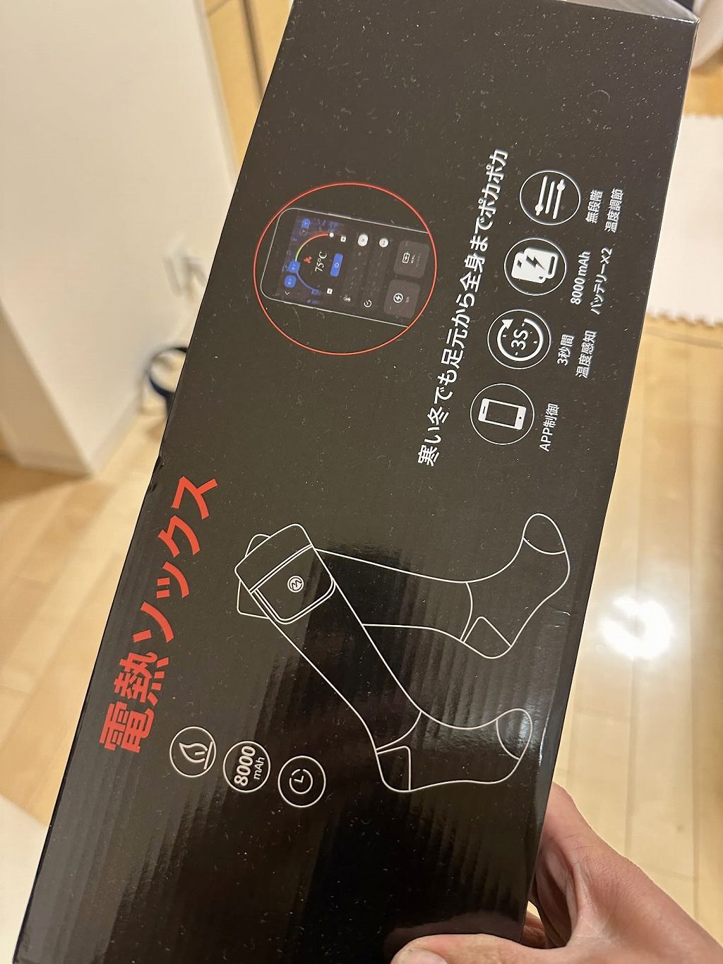 年始にムスメと走り行った ら、つま先が冷えて辛かったと言っていたからアマゾンで電熱靴下を買ってみた。
