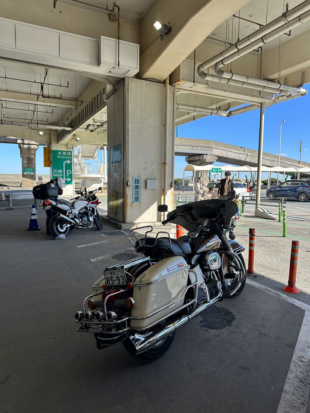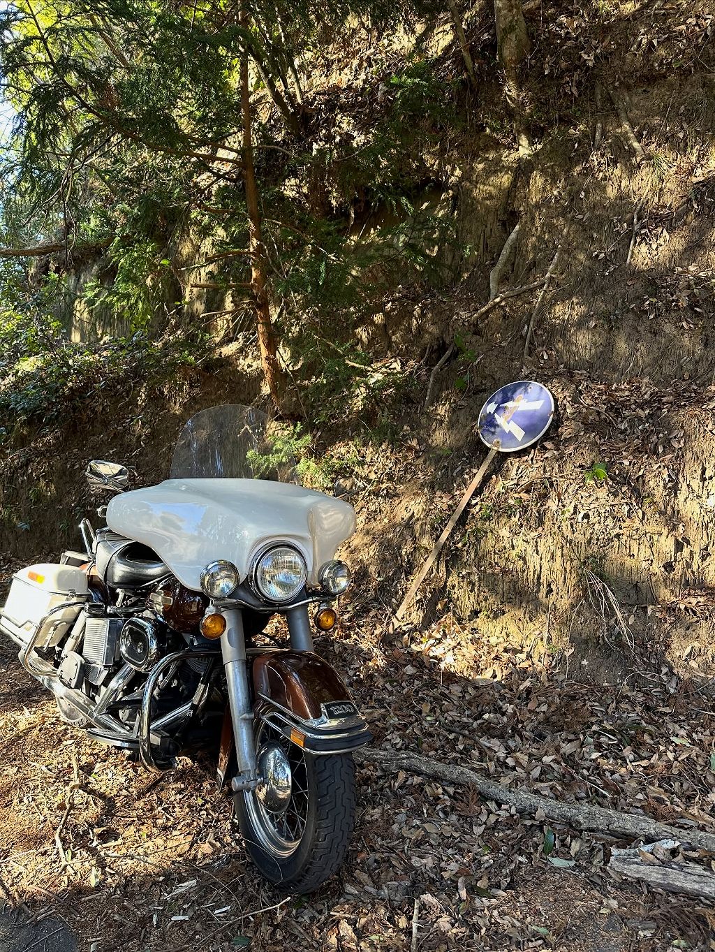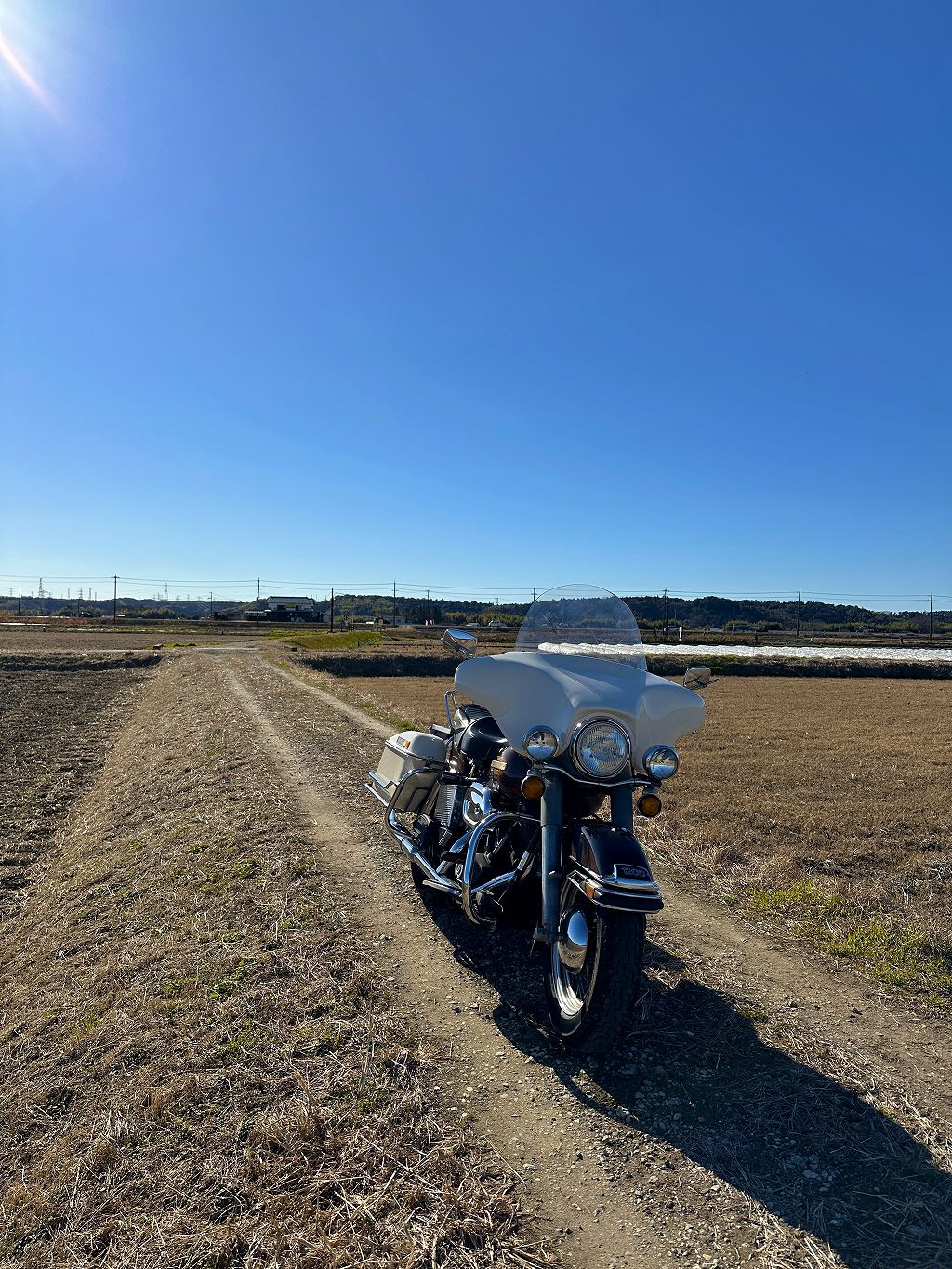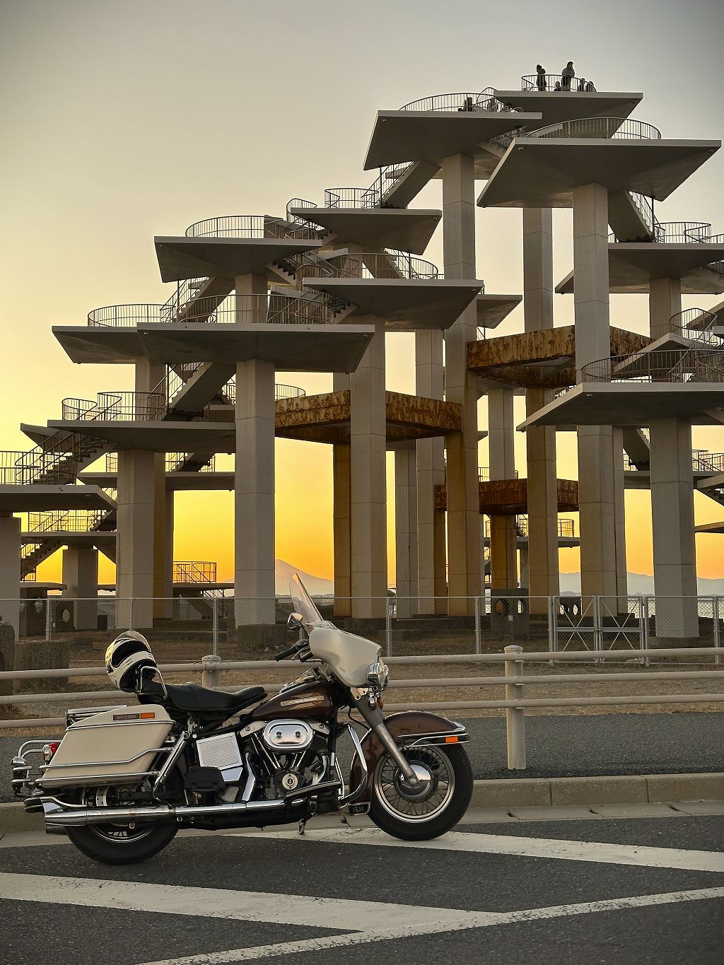 今のHDは座るバイクだけど、この頃のは立つ(こともできる)バイクなんだよね。