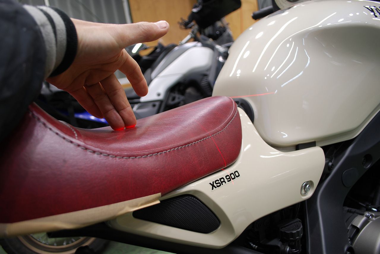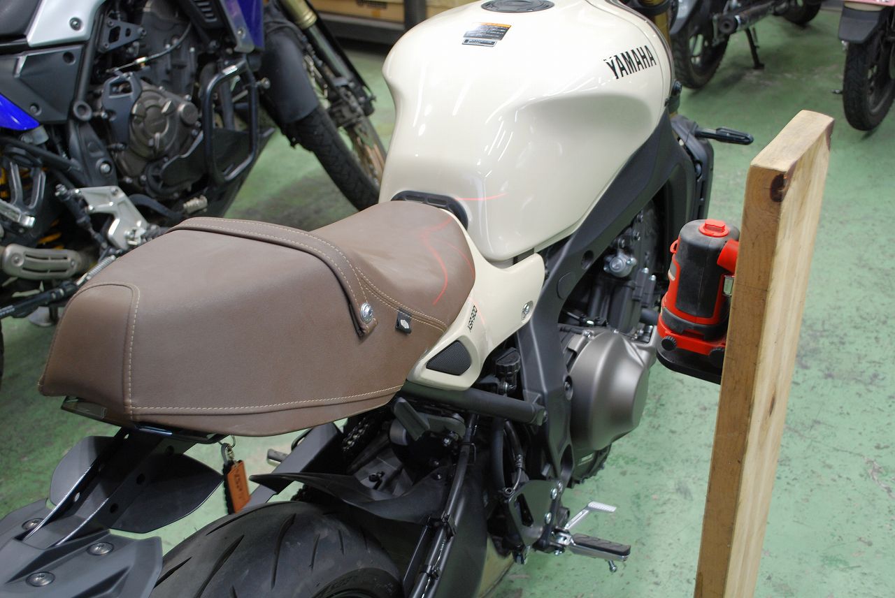 数値だけ追って行くと、XSR900純正シートが815mmとなっていて、シングルが820mmと『5mm高いじゃんか!』となります。