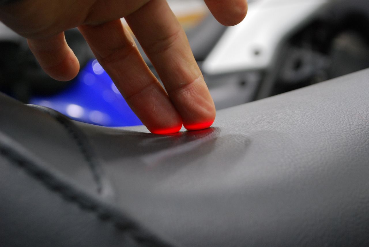 レーザーではなくレザーは浮いていますから押さえつつ上面の位置(高さ)を探ります。