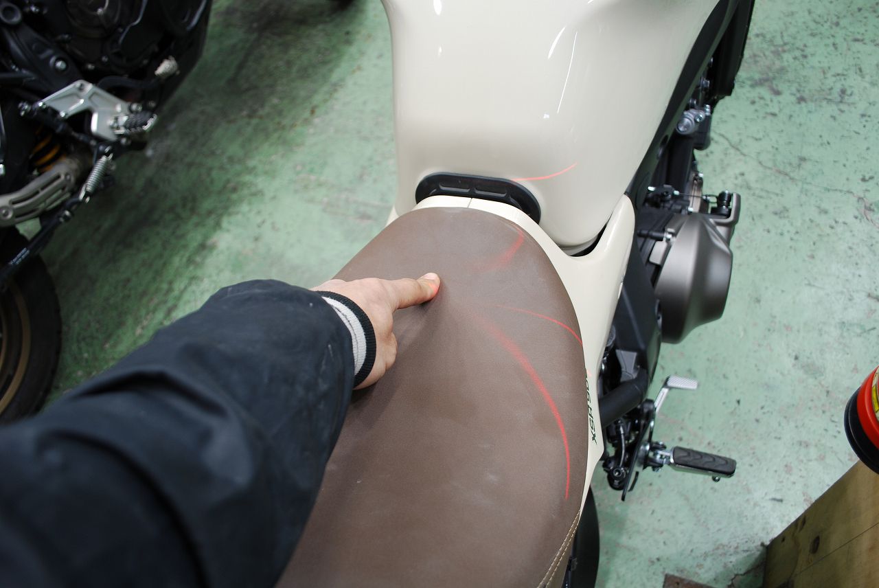 弊社のシートは、純正シートと同じシート高の数値であっても足つき良く乗り心地も向上します。