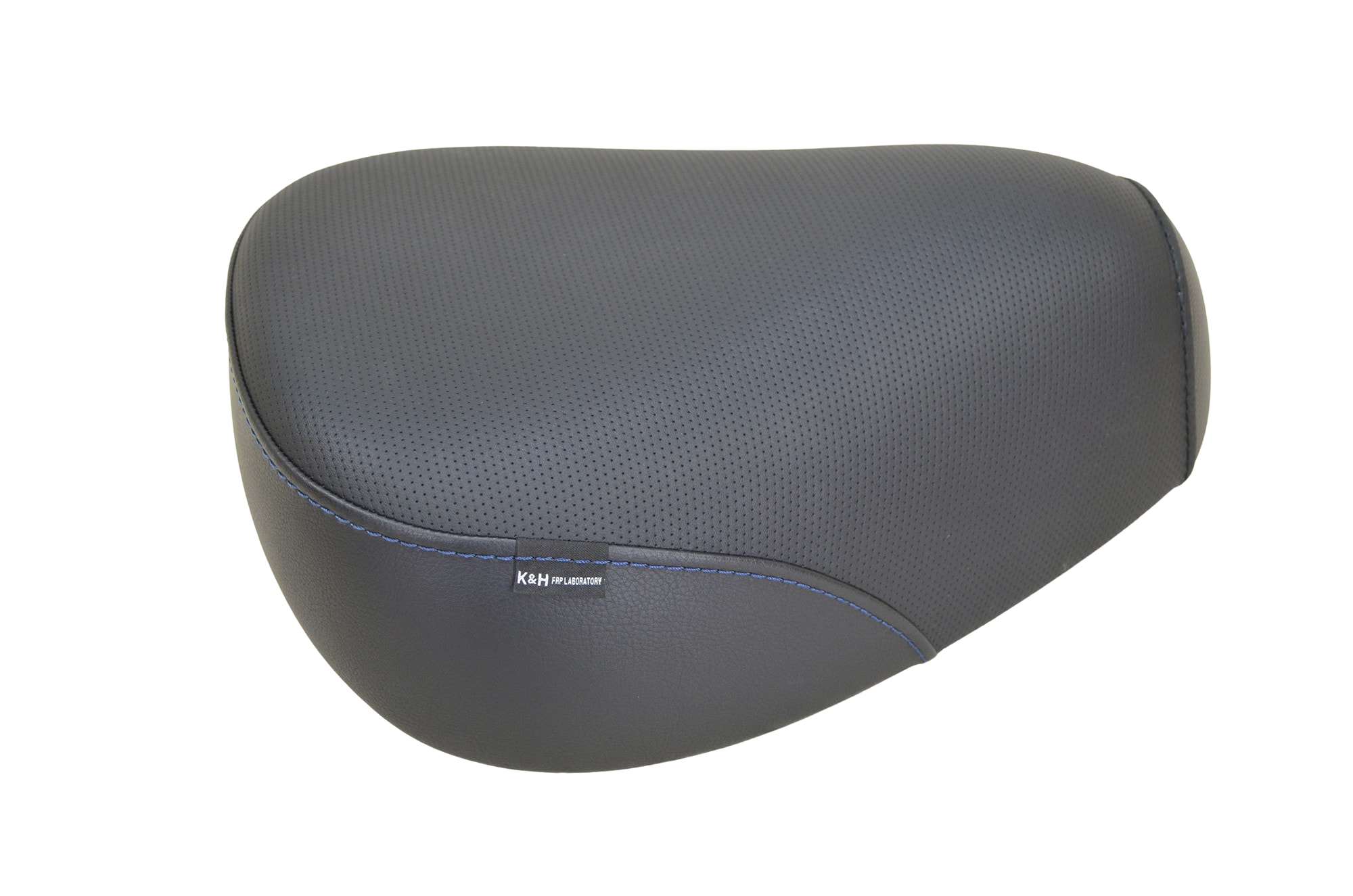 ステッチはサイドから後部にかけての縫い合わせラインをダークブルー、前切替はレザーに準じた色味(この場合は黒)で仕上げています。