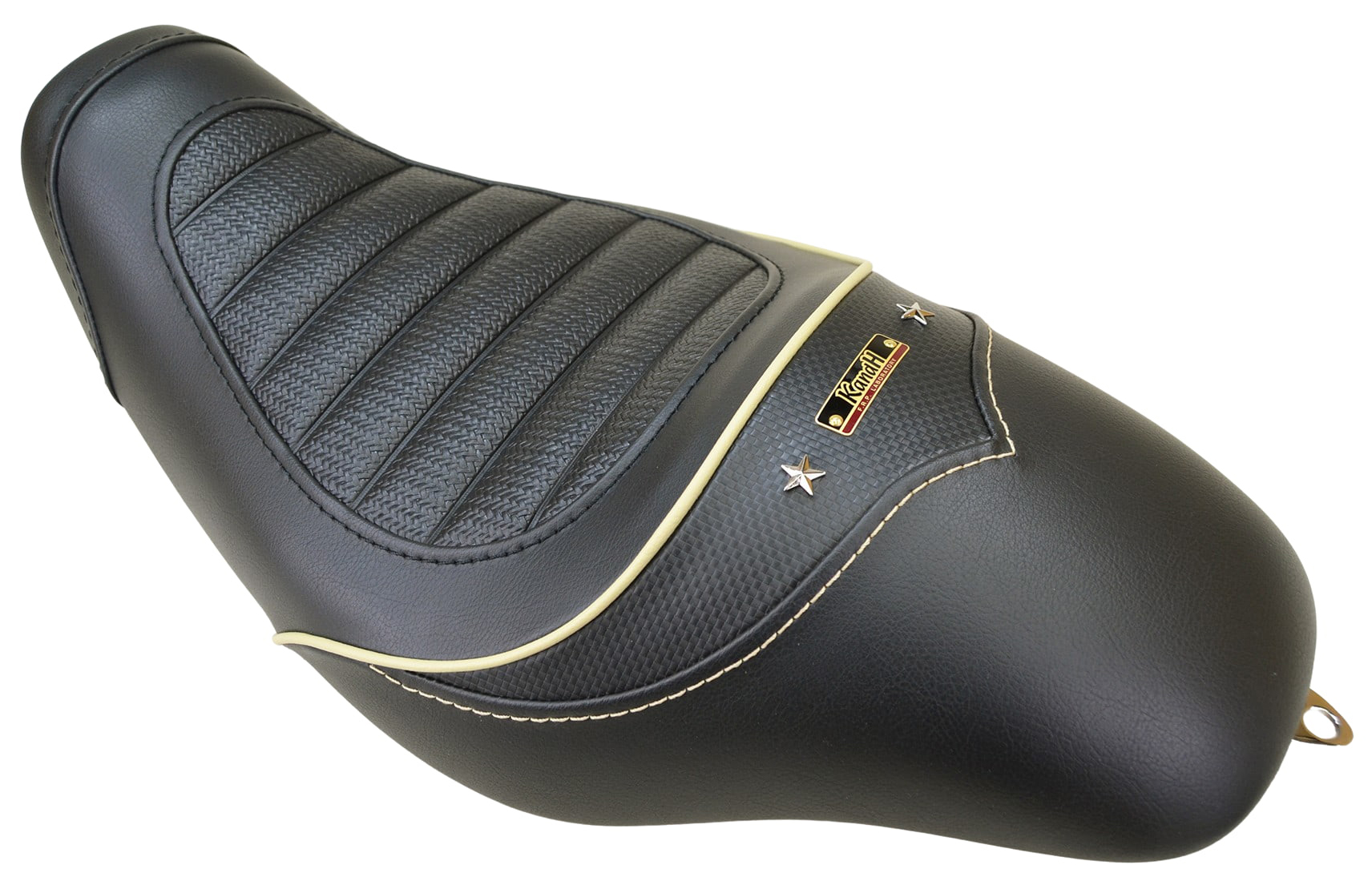 サイドから後部にかけての縫い合わせラインはサンドローバーのパイピング、後部のデザインラインはアイボリーステッチ仕上げに。
