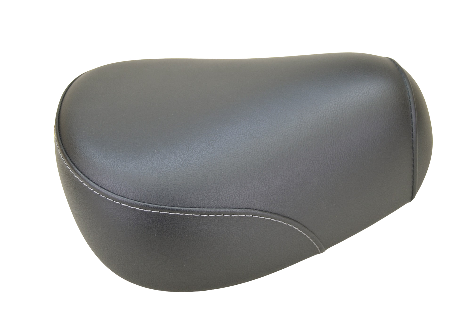 ステッチはサイドから後部にかけてのラインをメディアムシルバー、前切替ラインは標準黒ステッチでのオーダー。レザーは標準黒仕様です。 通常弊社の布製ピスネームがシート右側に付きますが、このシートでは金物のネームをシート後部中央に取り付けています。ネーム無しでのご納品はできません、ご了承下さい。