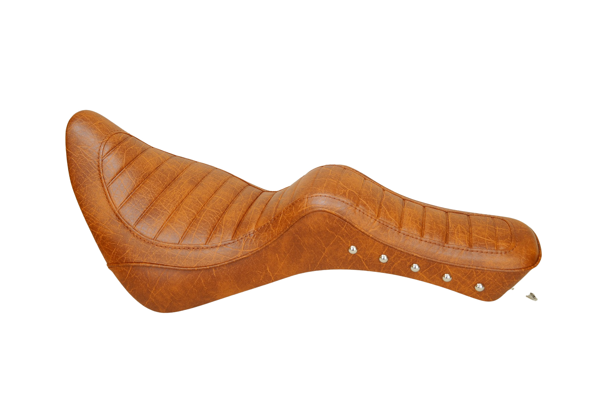 レザー全体とパイピングカラーをアンティークブラウンに変更。丸スタッドをサイドに左右5個づつ、計10個取り付けました。ステッチカラーは特に指定がない場合、レザーに準じた色に変更させて頂きます。