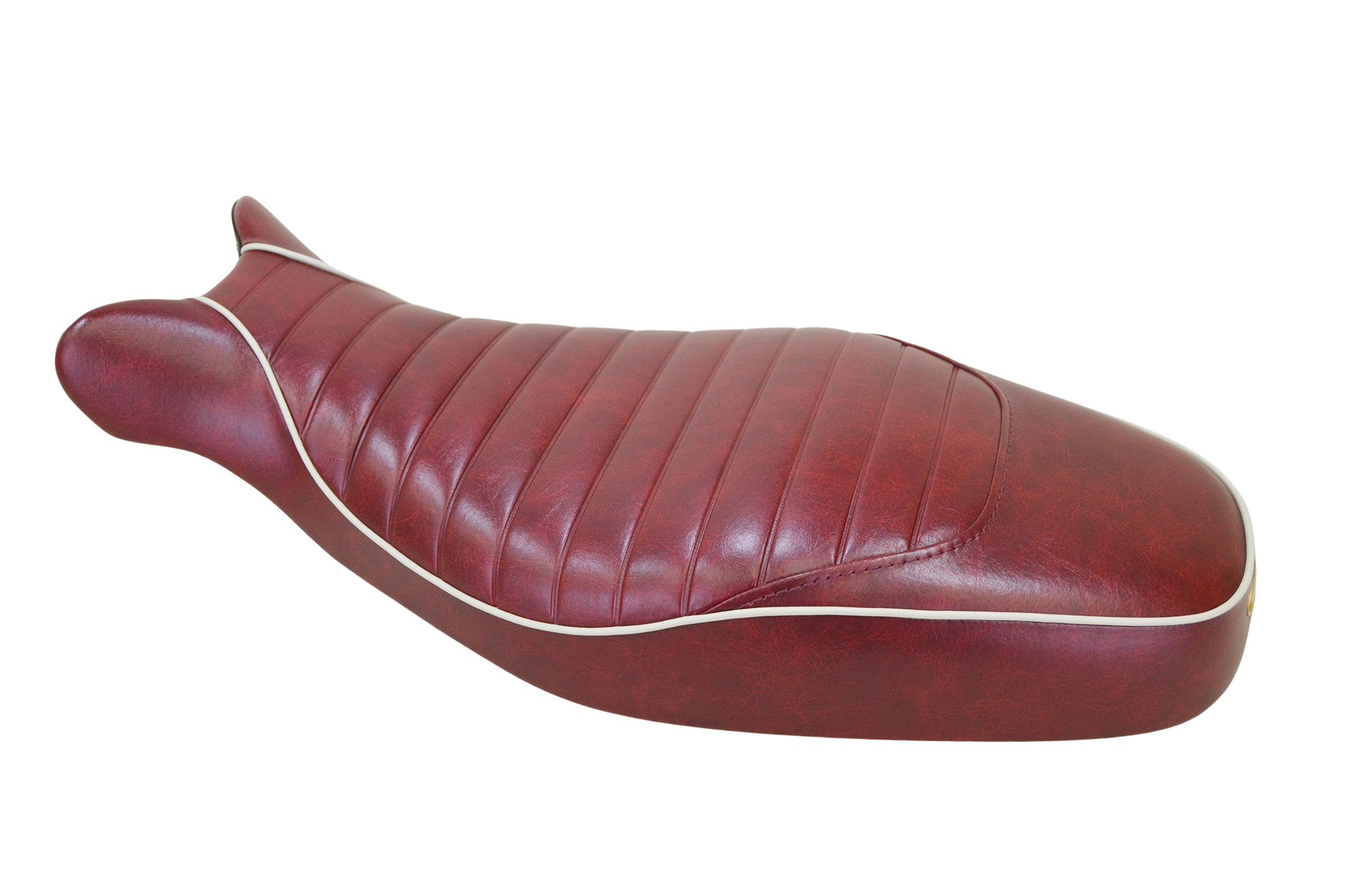 レザー全体をダークチェリーに変更。縫い合わせラインにはアイボリーのパイピングを使用しました。ステッチカラーは特に指定がない場合、レザーに準じた色で仕上げます。