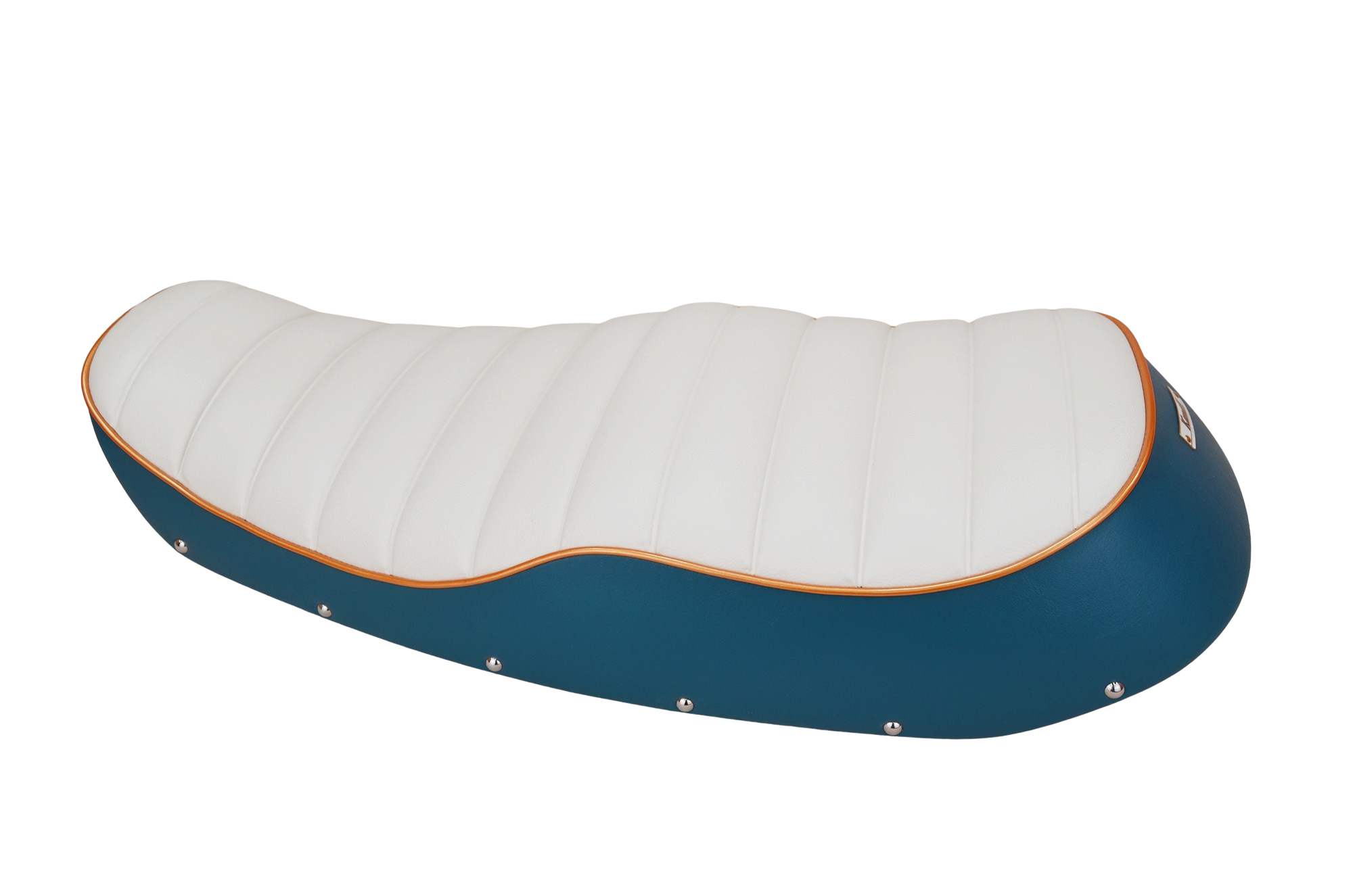 座面はホワイトレザーのワイド横タックロール仕上げ。