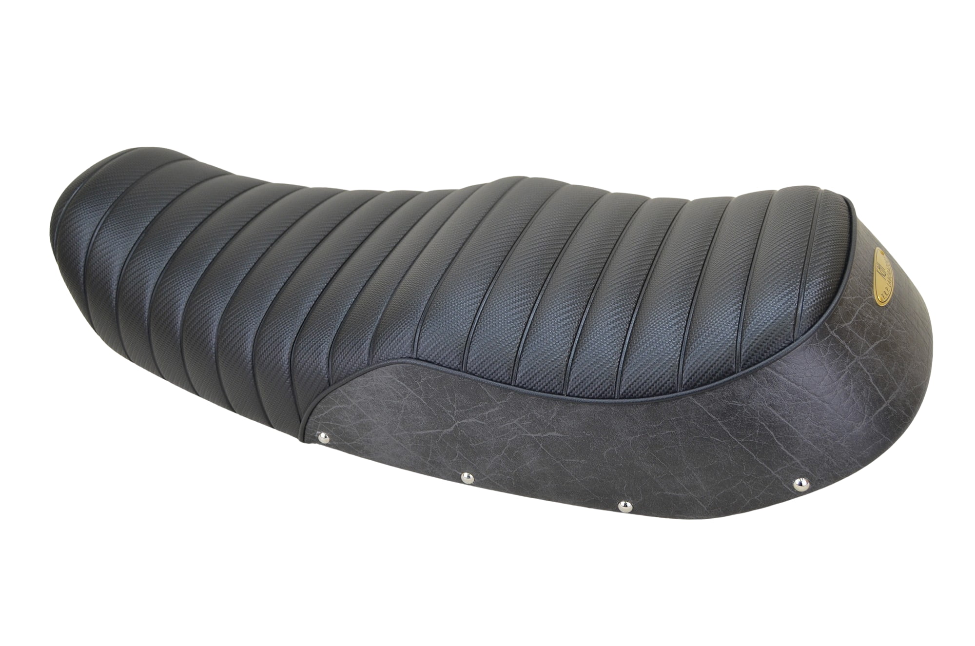 座面はカーボン綾織レザーの横タックロールでオーダー。