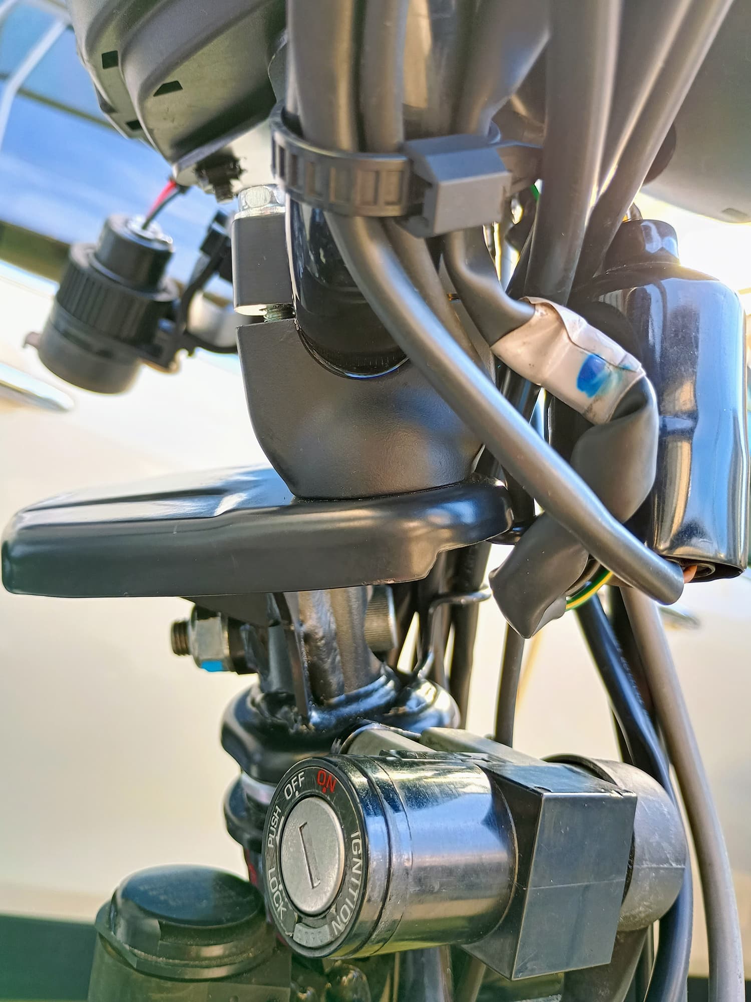 メーターの位置を変えずに、ハンドルクランプが純正デフォルト位置から約5㎝前方へ移動することにより、前輪の荷重を掛けやすくなり、前後のピッチングが少なくなることで身体への負担も軽減されます。