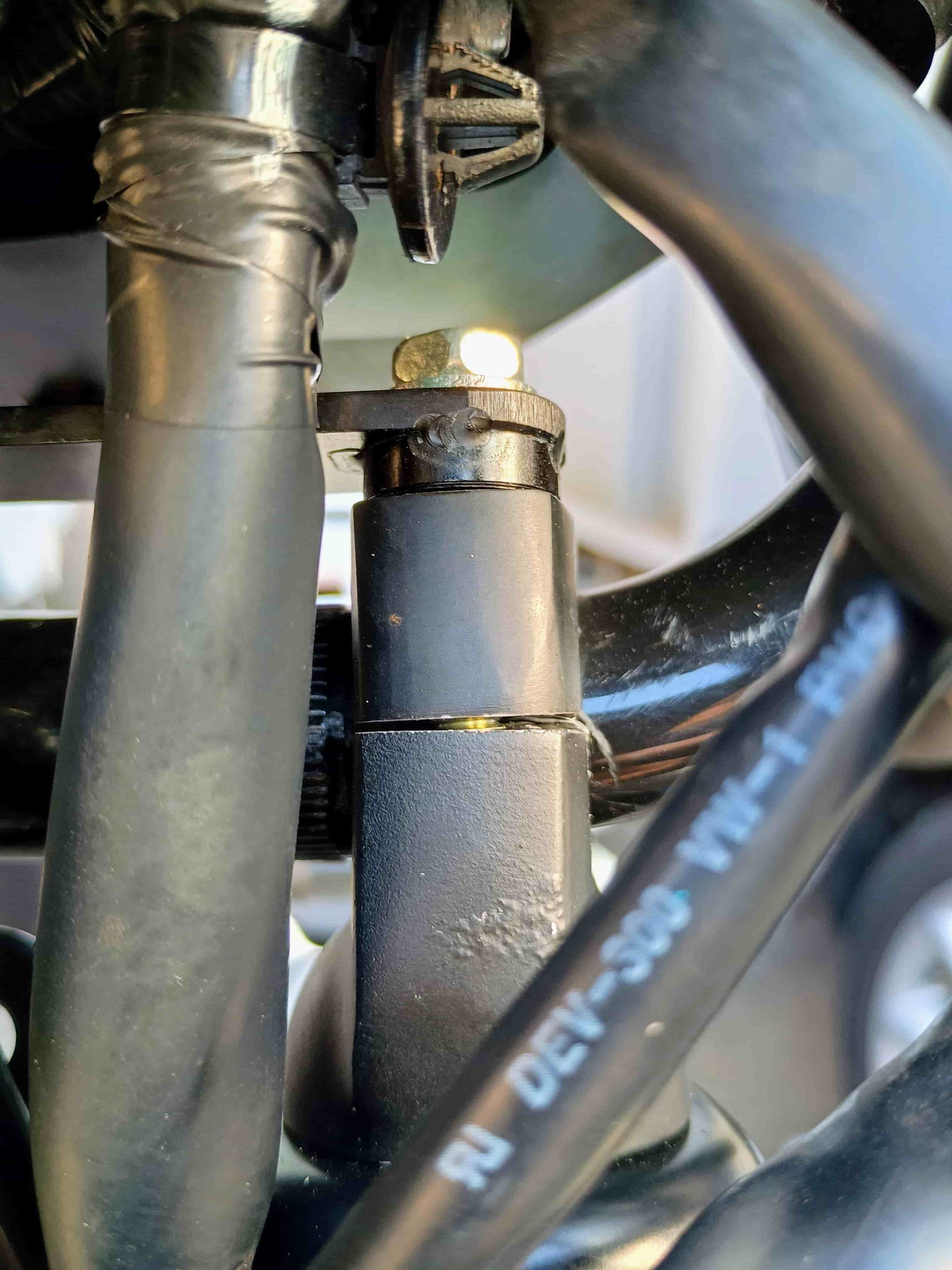 折角シートをご購入いただいても、この純正のハンドル位置との兼合いで、本来見込んでいる乗り心地や姿勢・ポジションの改善がうまく図れない。