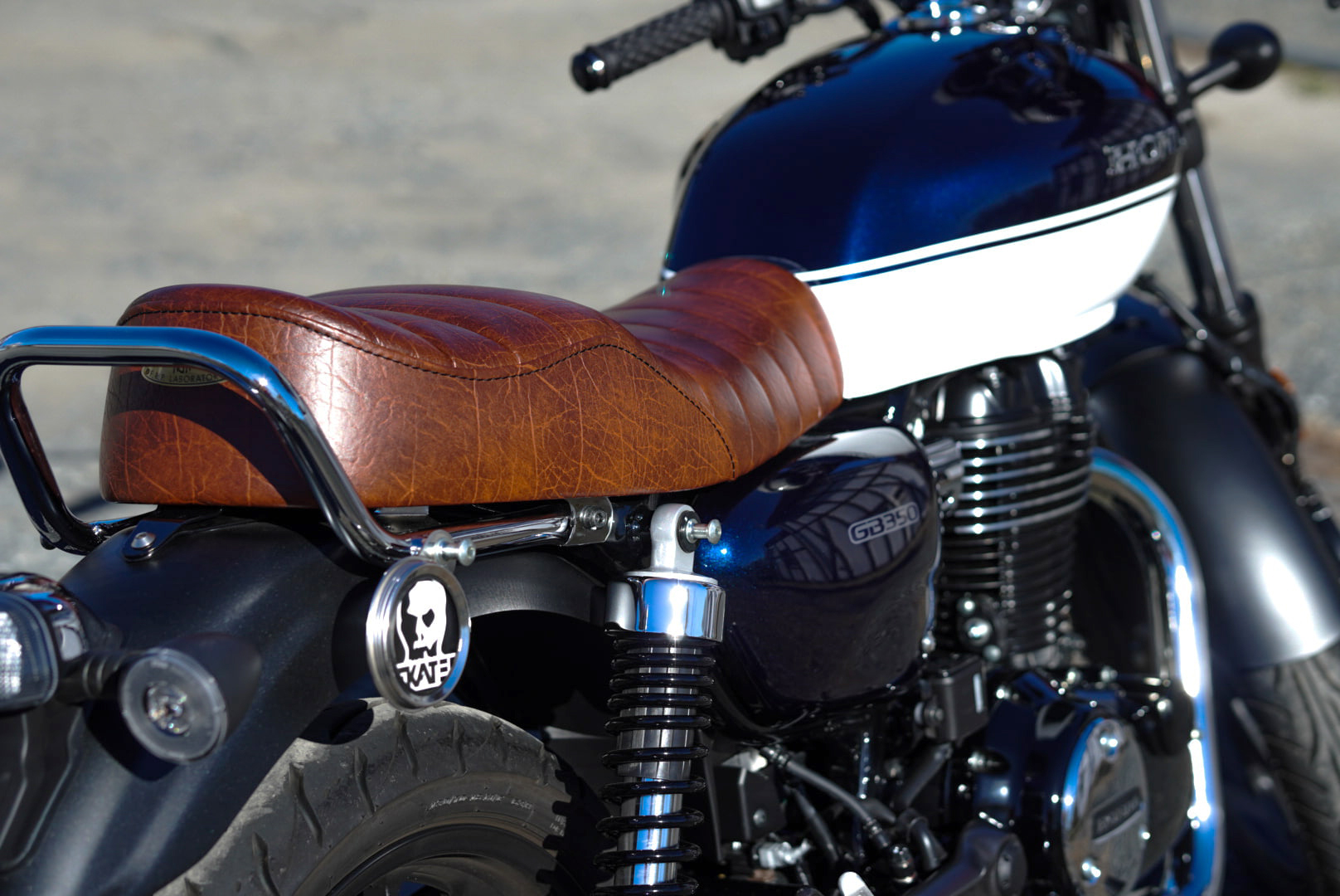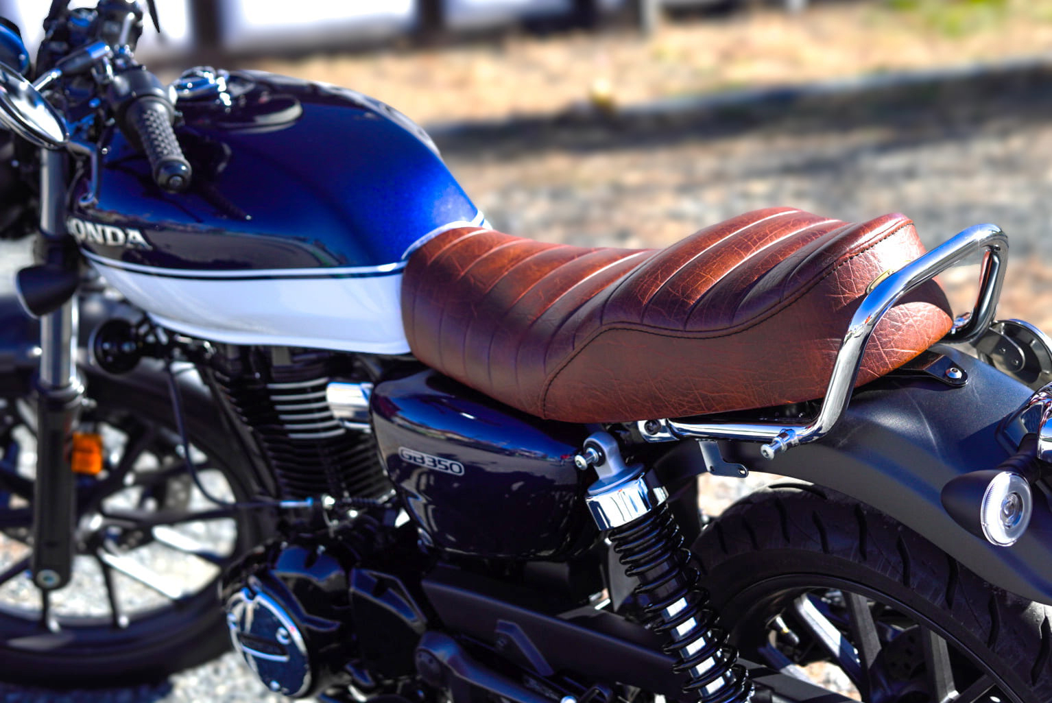 実際にお店でレザーサンプルを見て車体に当てながら悩みましたが、アンティーク調の物にして正解でした!