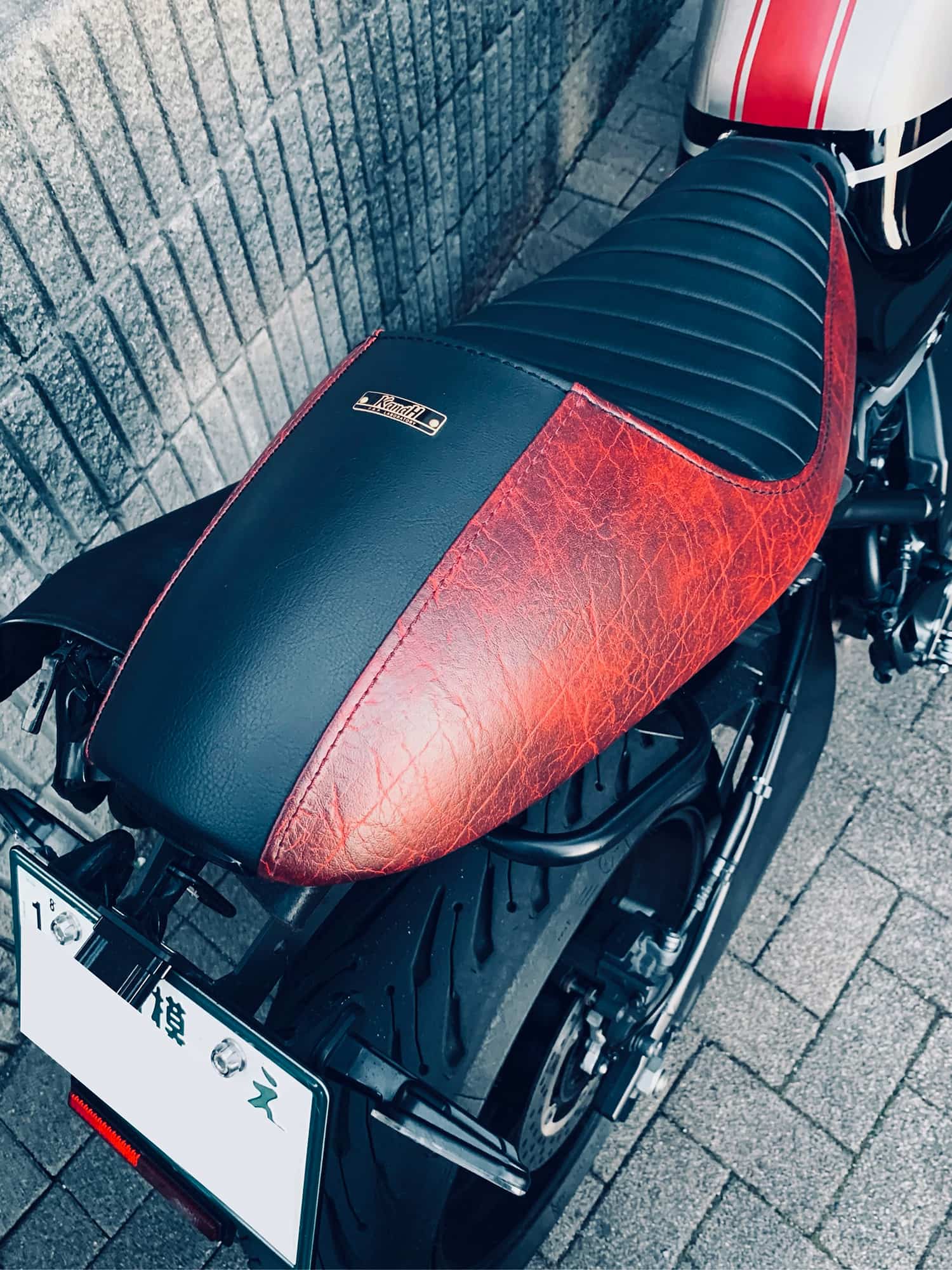 サイドレザーをアンティークレッドに変更したシングルシート。