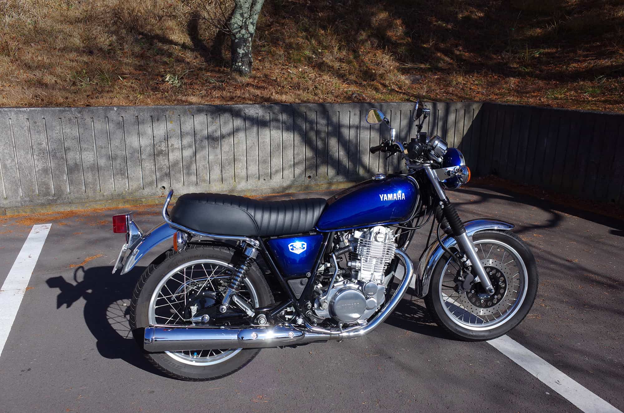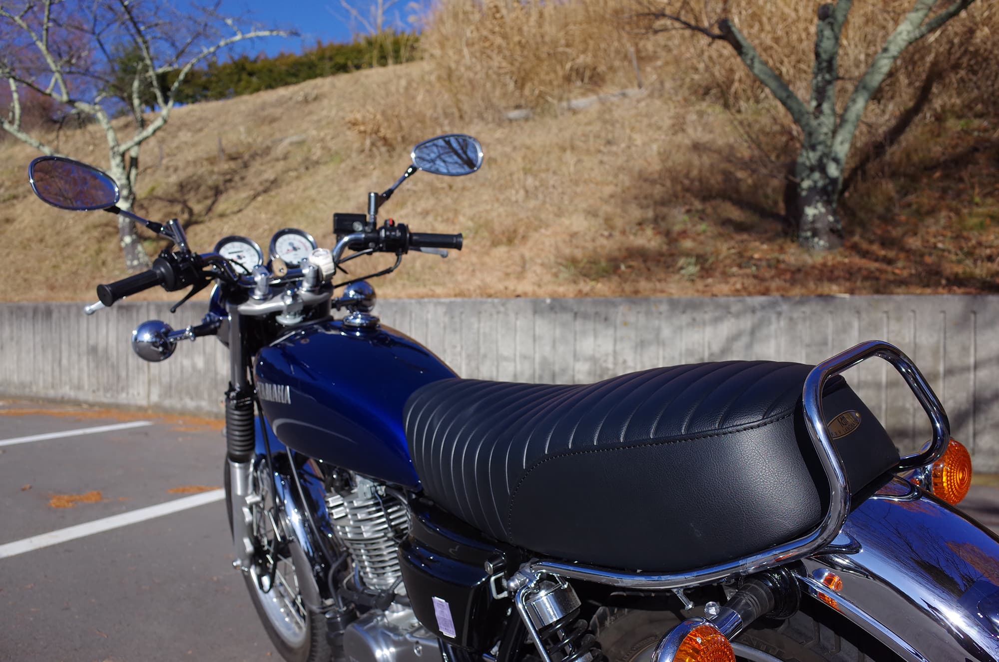 SR400 / SR500 用としては一番厚みと高さのある、テールホップ&フラットテールダブルシート。